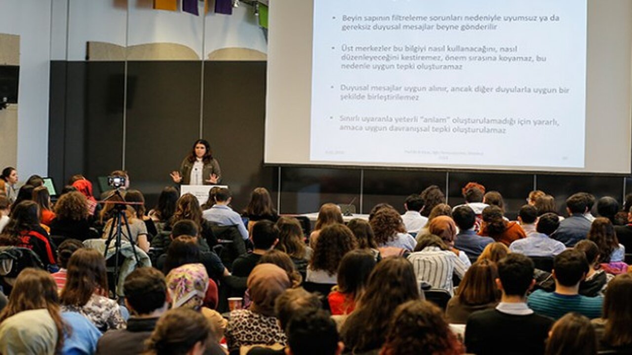 Açılış konuşmalarının ardından ilk oturum, Üsküdar Üniversitesi Fizyoterapi ve Rehabilitasyon Bölüm Başkanı Prof. Dr. Defne Kaya ‘Kronik Ağrılı Kas İskelet Sistemi Hastalıklarında İşlevsel Egzersiz Prensipleri’ başlıklı konuşmasında, ağrının nörofizyolojisini ve biomekanizmalarını anlatarak, işlevsel egzersizde ağrının nasıl yol gösterici olduğunu açıkladı. Sonrasında, Eczacıbaşı Spor Kulübü Fizyoterapisti Uzm. İlkay Koç, ağrıya felsefi açıdan yaklaşmak gerektiğini savundu. Koç, “Bir sistemin felsefesini kavrarsanız, gelişiminizi sınırsız kılarsınız. Ağrıyı nörobilim, fizyoloji, nöropsikiatri, davranış bilimleri ve ağrı bilimi gibi birçok farklı disiplin inceliyor. Milyonlarca sinaps, milisaniyeler içinde mükemmel bir elektrik akışı sağlayıp vücudun her köşesinden sinyaller alıyor. Dolayısıyla bu süreci sadece fiziksel olarak ele almak mümkün değil” dedi. Bunun yanı sıra Koç, öğrencilere ağrı modellemelerini okumalarını tavsiye etti.
