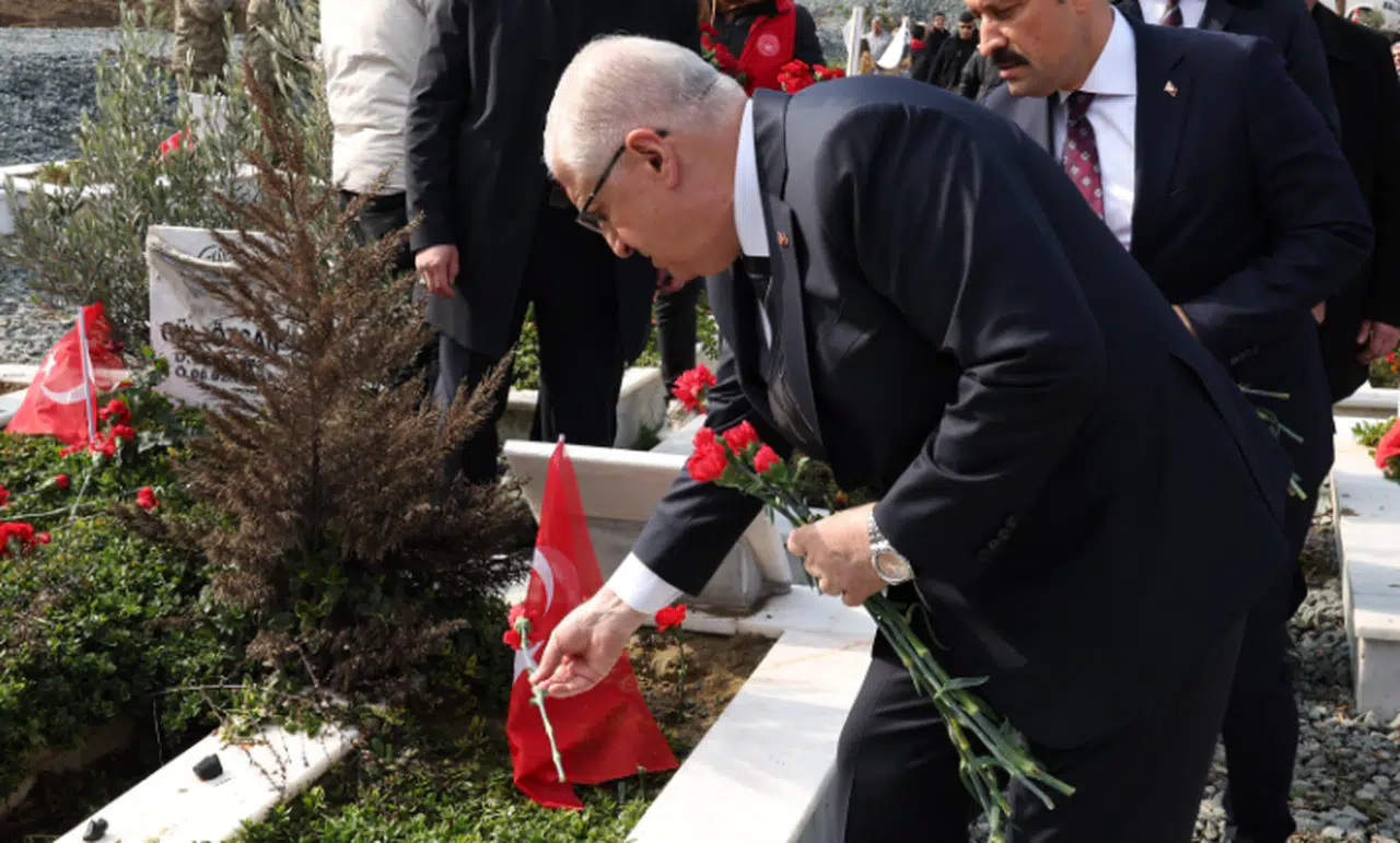 Milli Savunma Bakanlığı'nın resmi sosyal medya hesabından yapılan paylaşımda, "Milli Savunma Bakanı Yaşar Güler, 6 Şubat depremlerinin yıl dönümü dolayısıyla Hatay’a gitti. Bakan Yaşar Güler, depremde kaybettiğimiz vatandaşlarımız için Narlıca Deprem Şehitleri Mezarlığı'nda düzenlenen anma törenine katılarak mezarlara karanfil bıraktı" denildi.