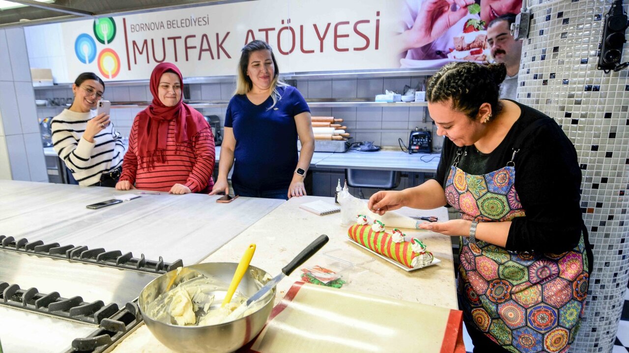 Hobi ve Beceri Edindirme Kurs Merkezi’nde Bornova Belediye Başkanı Ömer Eşki’nin eşi Beste Eşki’nin de katılımıyla düzenlenen Yılbaşı Süsü Atölyesi’nde katılımcılar, kendi el emekleriyle rengarenk süsler hazırladı. EvKA-3 Mutfak Atölyesi’nde ise yeni yıl temalı mutfak çalışmaları büyük ilgi gördü.