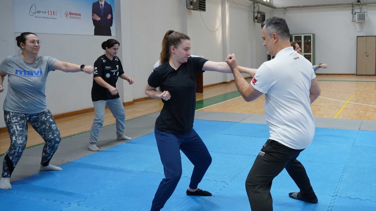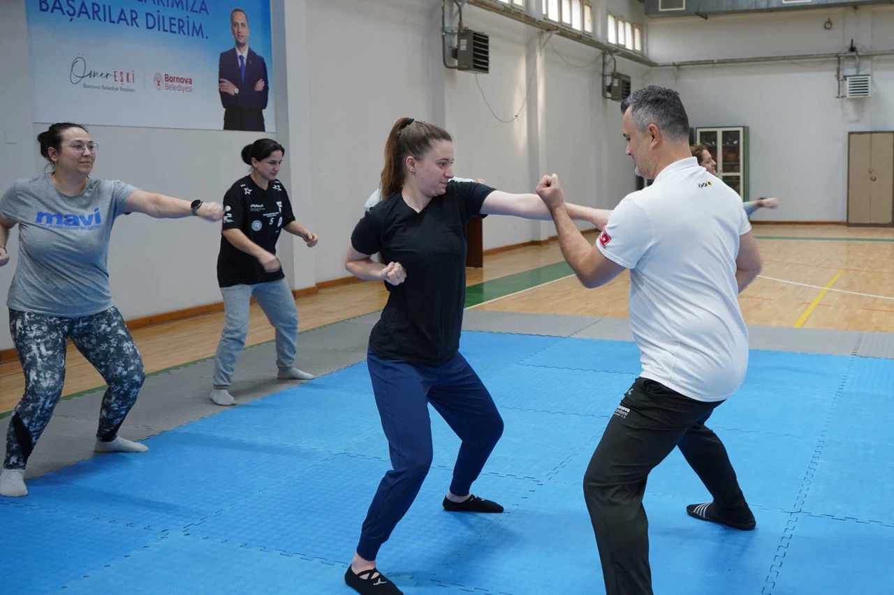 Bornova Belediye Başkanı Ömer Eşki, kadına yönelik şiddetle mücadelenin her yönüyle ele alınması gerektiğini belirterek, “Kadına şiddet, yalnızca bireysel değil toplumsal bir sorundur. Biz de Bornova Belediyesi olarak kadınlarımızın her alanda güçlenmesi için çalışıyoruz. Bugün verdiğimiz savunma eğitimi, ihtiyaç halinde kadınların kendilerini korumalarına destek olacak bir adım. Kadınlar güçlü olursa toplum da güçlü olur” diye konuştu.