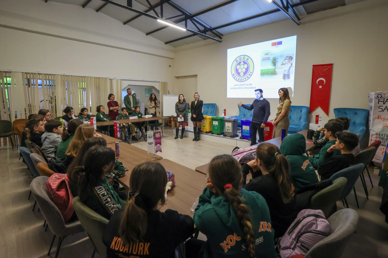 İklim değişikliğinin etkilerini en aza indirgemek amacıyla çalışmalar gerçekleştiren Buca Belediyesi, “V4Climate Değişikliği ile Mücadele Edecek” projesi kapsamında 12 – 14 yaş arası çocuklarla farkındalık artırıcı bir etkinlik gerçekleştirdi. Sürdürülebilirlik ve İnovasyon Merkezi’nde düzenlenen etkinlikte, iklim değişikliği ile nasıl mücadele edileceğine dair bilgiler verildi. Eğitimlerin sonunda ise atölye çalışması yapıldı. Çocuklar, Buca’daki bazı semtlerin iklim değişikliği sonrasında nasıl görüneceğini sanal gerçeklik (VR) gözlükleriyle deneyimleme şansı buldu. Öte yandan, evlerinden getirdikleri evsel atıkları, atık kutularına ayrıştırıp atan çocuklar, geri dönüşüme de katkı sağladı.