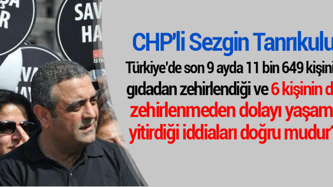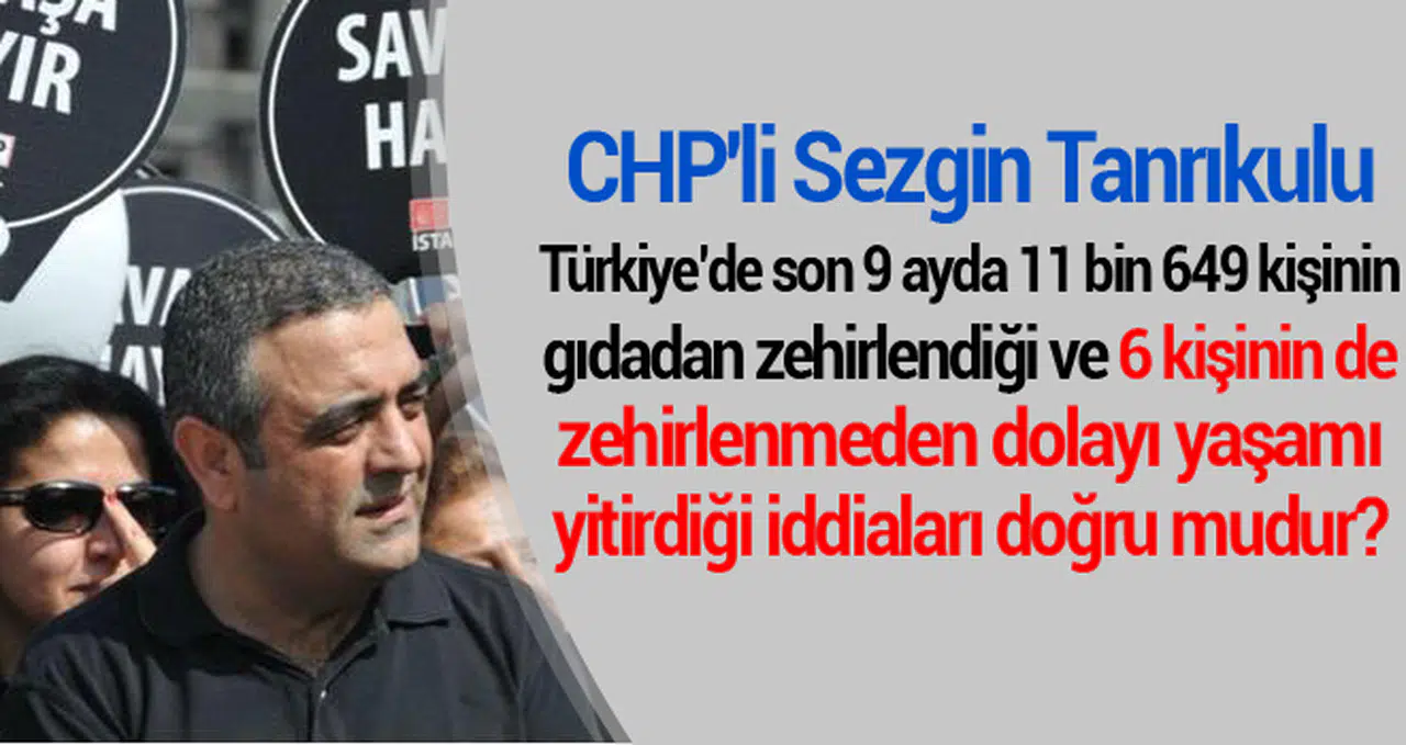 CHP'li Tanrıkulu:Türkiye'de son 9 ayda 11 bin 649 kişinin gıdadan zehirlendiği ve 6 kişinin de zehirlenmeden dolayı yaşamı yitirdiği iddiaları doğru mudur?