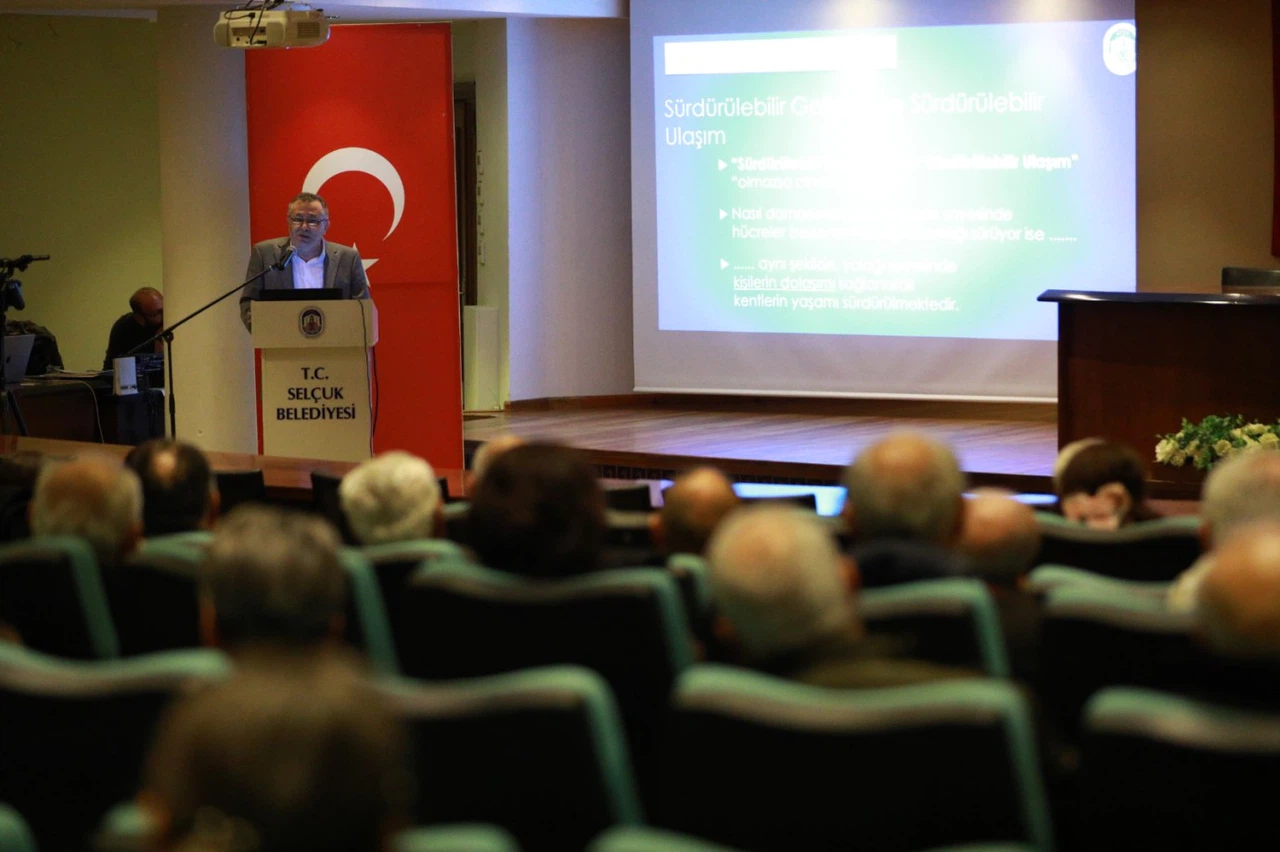 Başkan Ceritoğlu Sengel’in konuşmasının ardından Yüksek Şehir Plancısı – Ulaşım Uzmanı Fatih Ayan Efes Selçuk’un birçok yerinde 8 aylık bir sürede yapılan ölçümler ve gözlemler sonucu hazırlanan Efes Selçuk Sürdürülebilir Ulaşım Planı konusundaki sunumu ile katılımcılarla önemli bilgiler paylaştı.