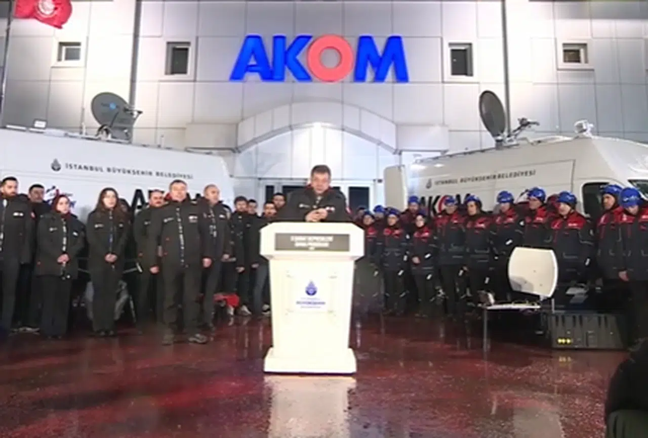 İBB, 6 Şubat 2023’te meydana gelen Kahramanmaraş merkezli depremlerde yaşamını yitiren vatandaşları andı. AKOM’da bir araya gelen, aralarında CHP Genel Başkan Yardımcısı Volkan Demir, TBB ve İBB Başkanı Ekrem İmamoğlu, milletvekilleri, belediye başkanları, bürokratlar ile emekçilerin bulunduğu yüzlerce kişi, ilk depremin gerçekleştiği saat olan 04.17’de saygı duruşunda bulundu. Depremde yaşamını yitiren yurttaşlar, Mustafa Demir Hoca tarafından okunan dualarla anıldı. Zaman zaman yoğunlaşan kar ve dolu yağışı altında konuşan İmamoğlu, şunları söyledi: