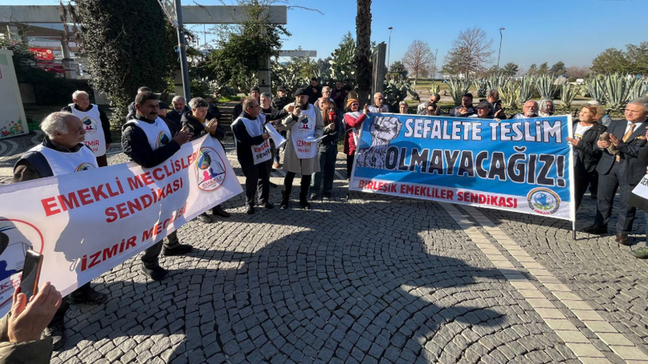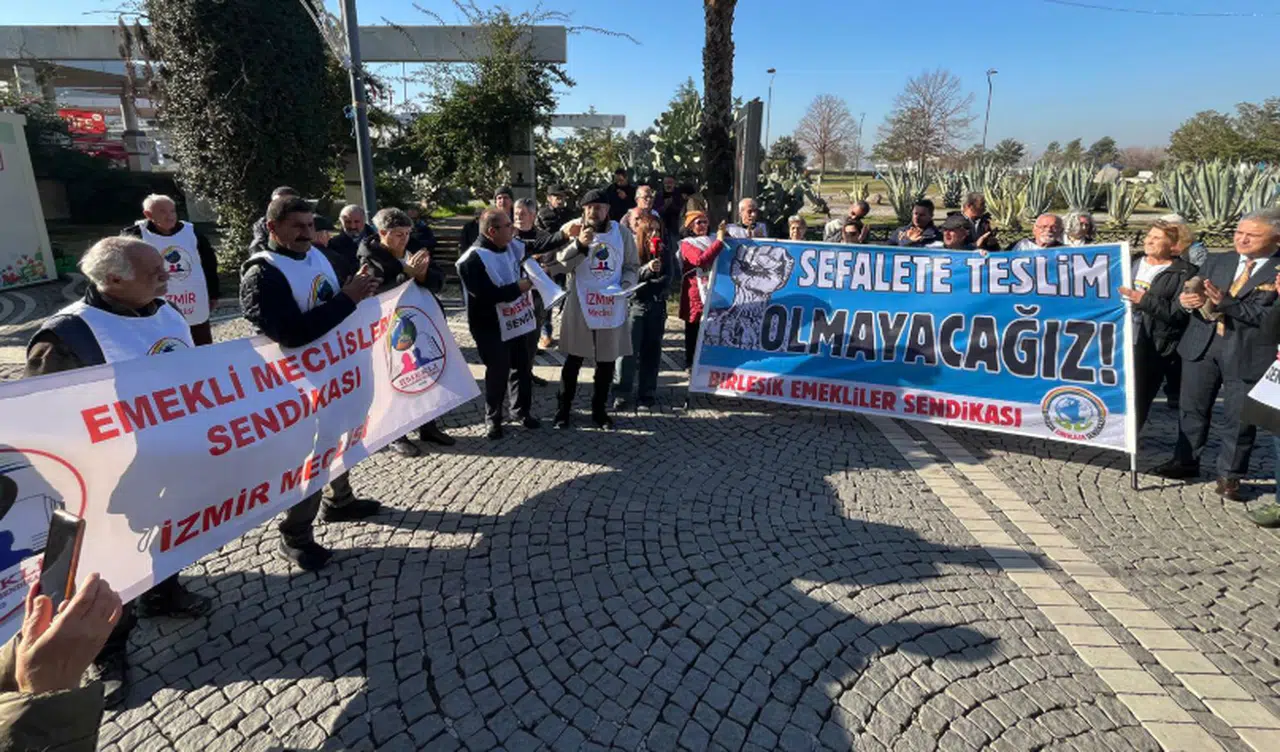 Birleşik Emekliler Sendikası ve Emekli Meclisi Sendikası İzmir Şubesi, 2025 yılı bütçesine tepki göstermek için ortak basın açıklaması yaptı.