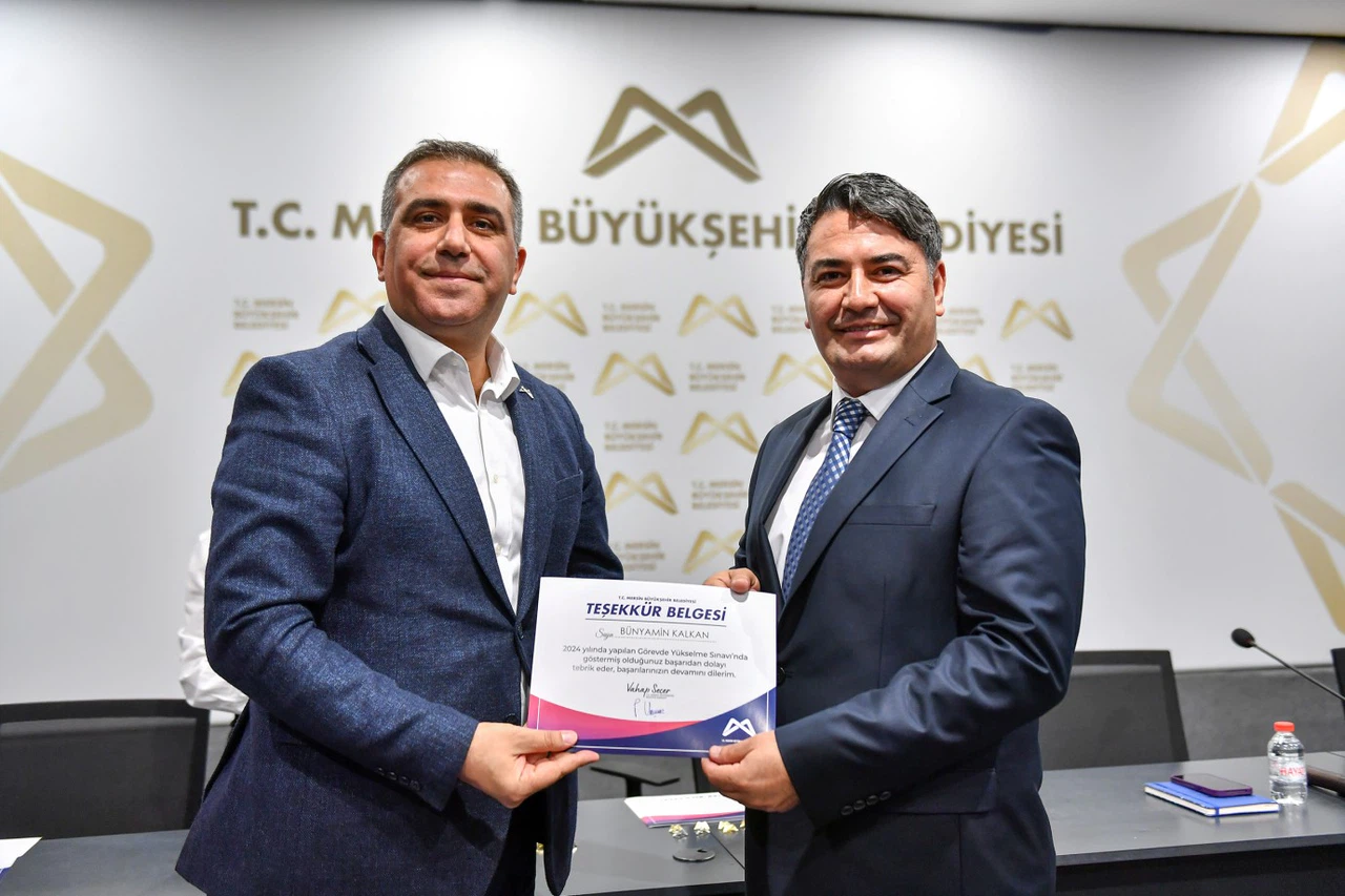 Devlet memuru olarak Mersin Büyükşehir Belediyesi’nde görev yapan ve ‘Görevde Yükselme ve Unvan Değişikliği Sınavı’nda başarılı olan 47 personele teşekkür belgesi ve rozetleri düzenlenen tören ile takdim edildi.