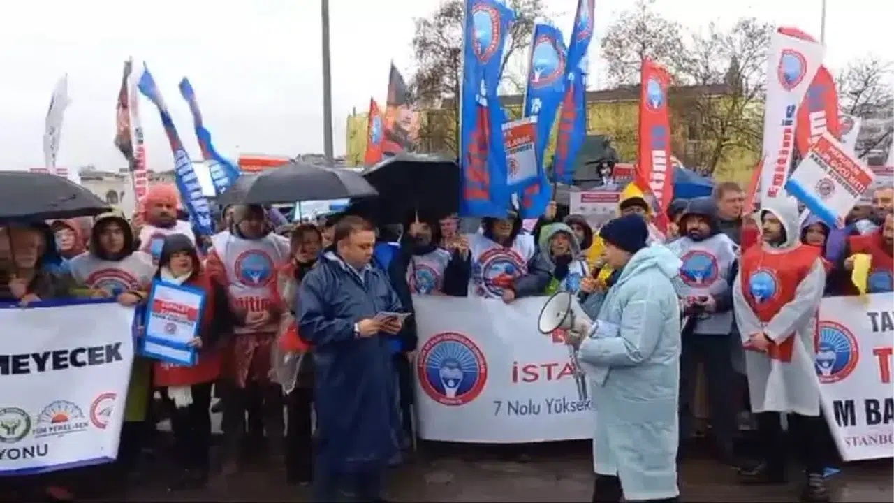 "Saraylar yıkılır, direnenler kazanır", "Emekçiyiz, haklıyız, kazanacağız", "Hükümet elini cebimizden çek" sloganlarının atıldığı eylemde, ortak basın açıklamasında bulundu. Basın açıklamasını Birleşik Kamu İş İstanbul İl Başkanı Alkoç Turan Başgönül okudu. Açıklamada şu ifadelere yer verildi: