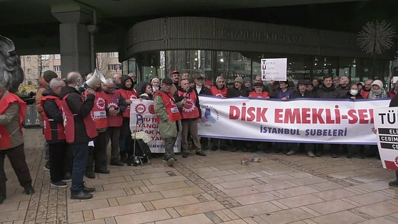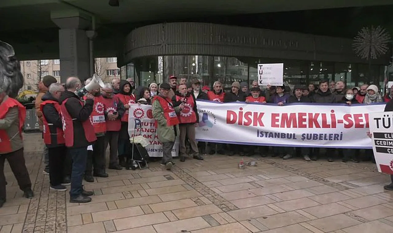 Hükümetin emekliler için TÜİK'in açıkladığı yüzde 15.75'lik rakam doğrultusunda açıkladığı ortış oranına tepki gösteren DİSK Emekli-Sen İstanbul Şubeleri basın açıklaması yaptı.