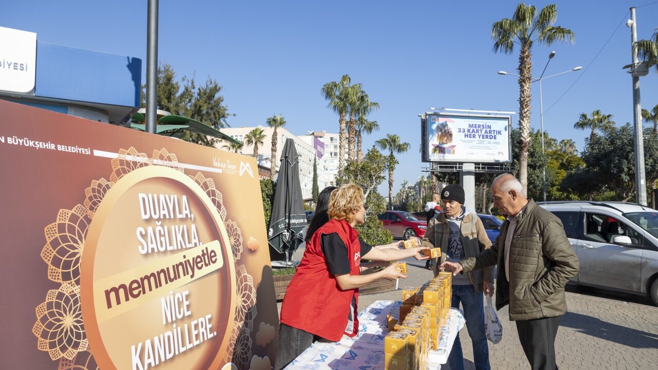 Mersin Büyükşehir Belediyesi, her kandil olduğu gibi Miraç Kandili’nde de vatandaşların yanında olarak, kandil simidi ikramında bulundu. Sosyal Hizmetler Dairesi Başkanlığı tarafından 4 merkez ilçe başta olmak üzere 32 cami önünde dağıtım yapan ekipler, 15 bin kandil simidini vatandaşla buluşturdu.