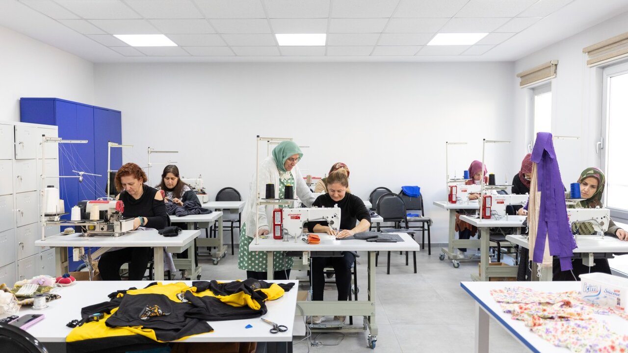 Mersin Büyükşehir Belediyesi Sosyal Hizmetler Dairesi bünyesinde faaliyetlerini sürdüren Halkkent MERCEK Mesleki Eğitim Merkezi’nde, ‘Giyim Üretim Teknolojileri’ kursu ile kadınlar dikiş öğreniyor. Haftada 2 gün 13.00-16.00 saatleri arasında devam eden kursta kadınlar hem sosyalleşiyor hem de üretiyor. Kimi kursiyerler kendi ihtiyaçları doğrultusunda giysi dikmeyi öğrenirken, kimi ise aile bireyleri ya da torunları için kıyafet hazırlamanın mutluluğunu yaşıyor.