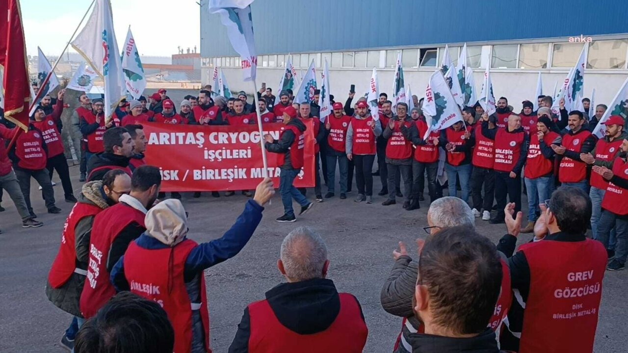 14 Aralık'ta Cumhurbaşkanı ve AKP Genel Başkanı Recep Tayyip Erdoğan’ın imzasıyla Resmi Gazete'de yayımlanan kararla "milli güvenliği bozucu nitelikte" olduğu gerekçesiyle 60 gün süreyle ertelendi. Grevin Anayasal bir hak olduğunu belirten Birleşik Metal-İş üyesi işçiler, Cumhurbaşkanlığı kararnamesiyle getirilen erteleme kararına rağmen grevlerine devam etme kararı aldı. Bu doğrultuda Balıkesir Gönen'de bulunan MESS'e bağlı Arıtaş Kriyojenik'te 132 işçi daha önce duyurusunu yaptıkları üzere bugün greve başladı. Fabrika önünde toplanan işçiler halay çekti, "Grev haktır yasaklanamaz", "Sadaka değil, toplu sözleşme" sloganları attı.