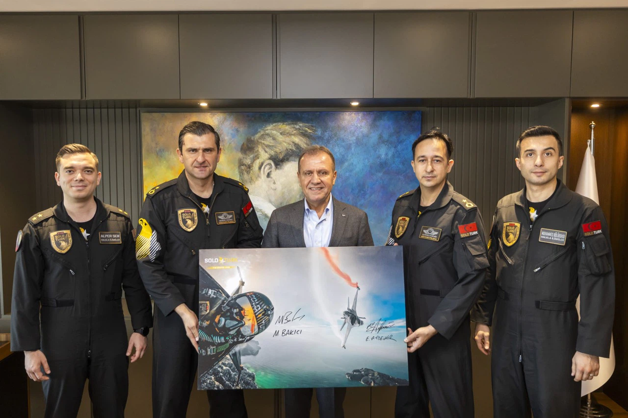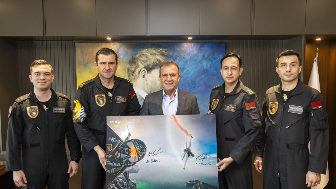 Mersin Büyükşehir Belediyesi Kültür ve Sosyal İşler Dairesi Başkanlığı tarafından Mersin’in kurtuluşunun 103. yıl dönümü dolayısıyla kentte gösteri gerçekleştirerek Mersin semalarında birbirinden güzel koreografiye imza atacak olan Türk Hava Kuvvetleri’nin akrobasi timi SOLOTÜRK Ekibi, Mersin Büyükşehir Belediye Başkanı Vahap Seçer’i ziyaret etti.