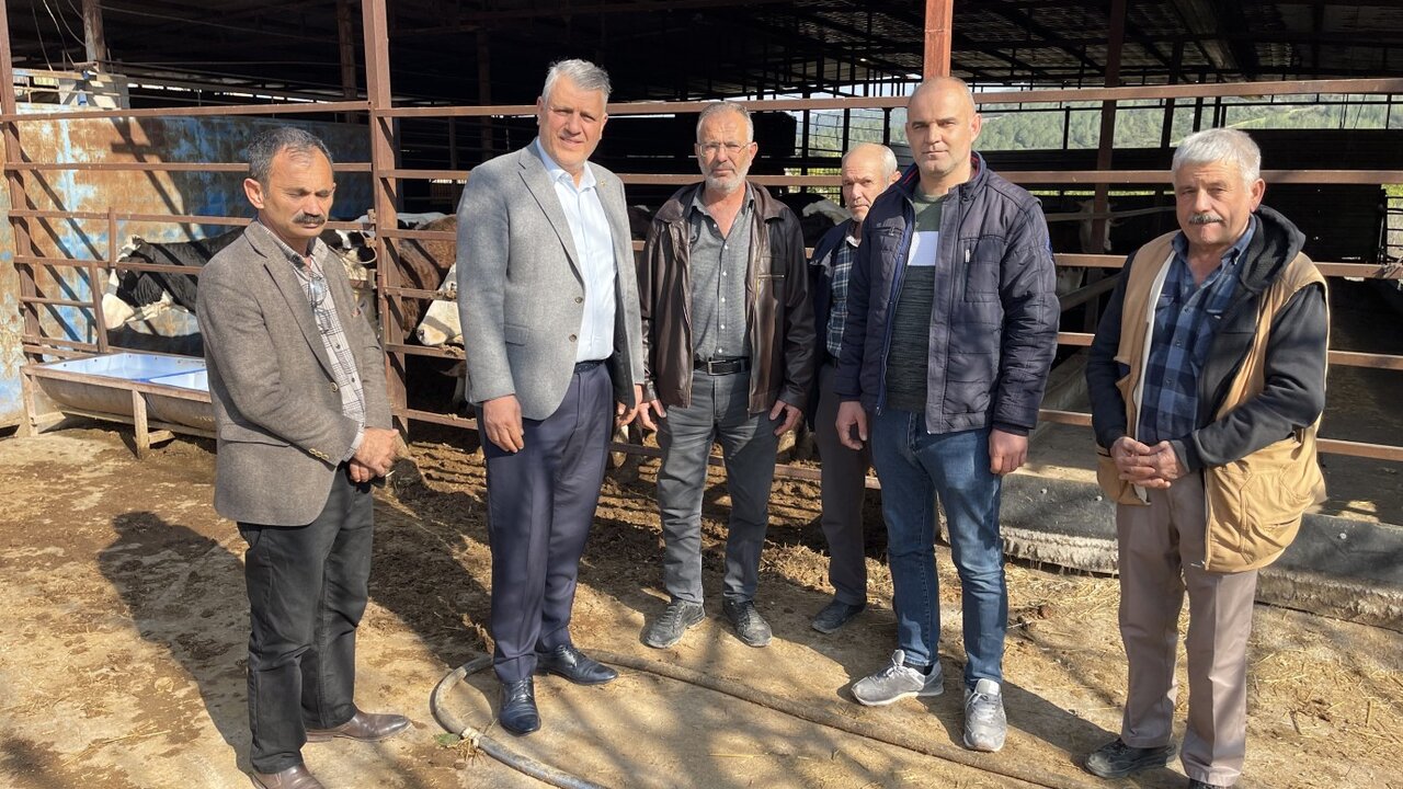 İnek ahırı önünde Milletvekili Ayhan Barut'a derdini anlatan Çelemli Süt Üreticileri Kooperatifi Başkanı Volkan Yavaş, "Ben üreticiyim, süt ve et üreticisiyim. Süt üretmeye çalışıyoruz ama yapamıyoruz. Şu an 13 liraya süt satıyoruz, 650 liraya yem alıyoruz. Sütün maliyeti 17-18 lira. Zarar ediyoruz. O yüzden her ay, mesela 10 ineği olan her ay 1 ineğini satıyor, yemciye ödeme yapıyor, her ay bir tane gidiyor. Maliyetin yarı fiyatına süt satıyoruz. Benim 17 ineğim var. Bu köyde 7-8 yıl önce 3500 hayvan vardı, şimdi 1500 hayvan var. Yarıdan bile fazla azaldı. O zaman 10 ton süt üretiyorduk, şimdi 3 ton üretiyoruz. Maliyetlerden kaynaklı süt üretimi ve hayvan sayısı azaldı. Sütü satamıyoruz, 13 liraya süt veriyoruz, konseyin açıkladığı fiyat 17 lira. Bunun bile altına satıyoruz" diye konuştu.
