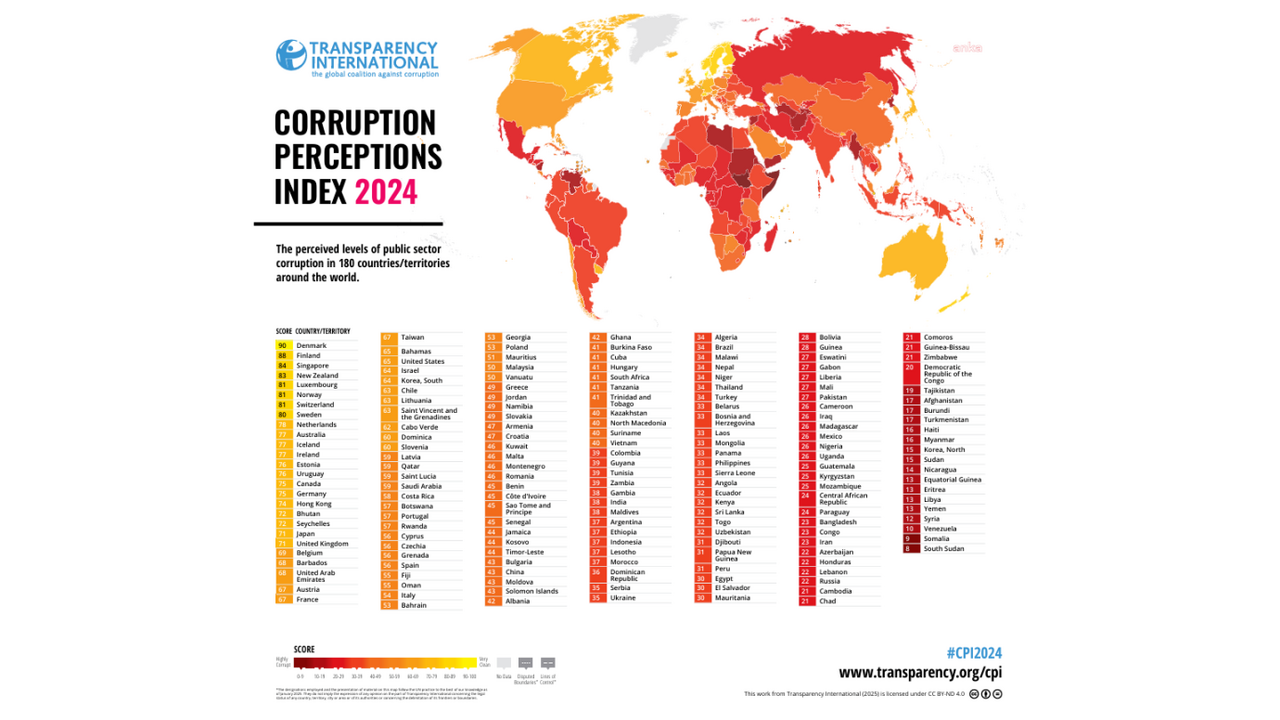 Uluslararası Şeffaflık Örgütü'nün 1995 yılından bu yana her yıl yayınladığı Yolsuzluk Algı Endeksi’nin 2024 raporu bugün yayınlandı. 13 dış kaynaktan elde edilen verilerin kullanılarak hazırlandığı Endeks’te 180 ülke ve bölge, kamu sektöründeki yolsuzluk seviyelerine göre sıralanıyor.