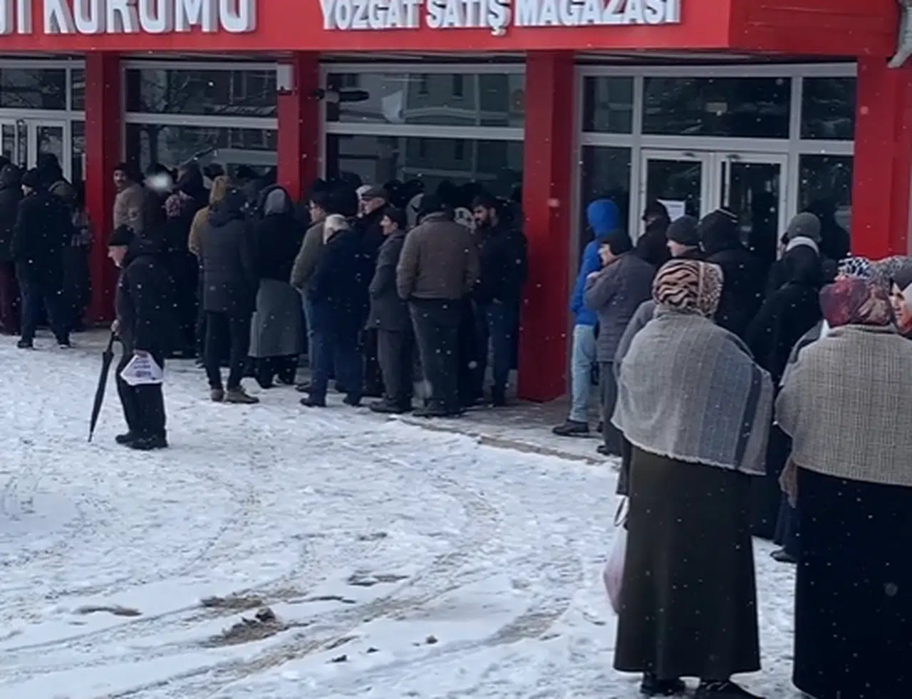 Yozgat'ta piyasaya göre daha 'ucuz et' satışının yapıldığı ESK satış mağazası önündeki yoğunluk, Ramazan ayı yaklaşırken daha da arttı. Yurttaşlar, Yozgat'ta sadece bir tane olan ve sabah saat 09.30’da açılan ESK satış mağazası önünde soğuk havaya aldırış etmeden erken saatlerde sıraya giriyor, mağazada günde yaklaşık 1.5 ton et satışı yapılıyor. Mağaza önünde uzun kuyruklar oluşturan yurttaşlar, yüzde 15’i yağlı bir kilo dana kıymayı 350 liradan, sığır bifteği ise 435 liradan alıyor. Kasap ve marketlerde ise dana kıyma 500-600 liradan, kuşbaşı 600-800 liradan satılıyor.
