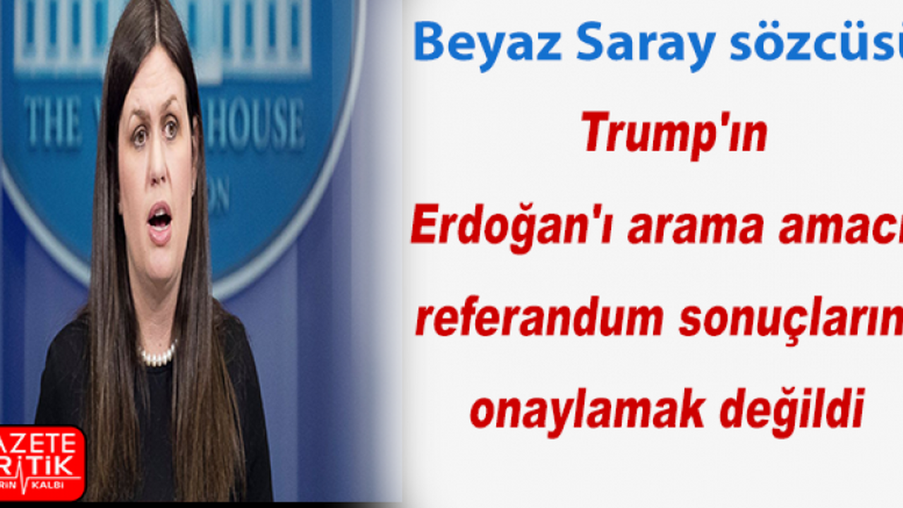 "Bu, Erdoğan'ın tartışmalı bir seçimle gücünü artırmasına destek anlamına gelmiyor mu?" sorusunu, "Ben öyle düşünmüyorum, görüşmenin amacı bu değildi" diyerek yanıtlayan Sanders, "Trump'ın araması, mevcut sonuçların resmi olarak kabul edilmesi anlamına gelmiyor. AGİT'ten, normalde yaptığı gibi elinden geleni yapmasını ve bütünlüklü bir rapor ortaya çıkarmasını istiyoruz" dedi.