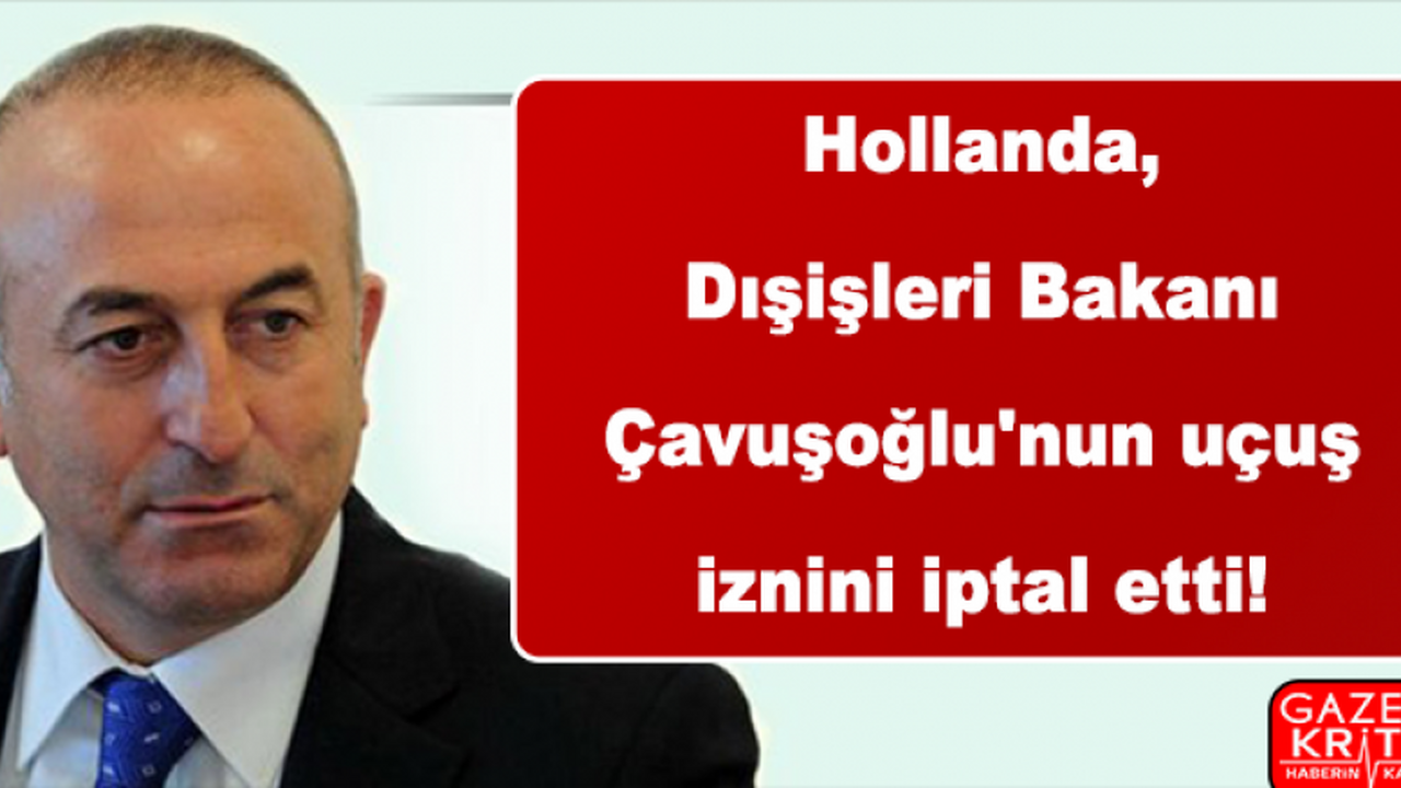 Hollanda, Rotterdam'a gitmeye hazırlanan Türkiye Dışişleri Bakanı Mevlüt Çavuşoğlu'nun uçuş izninin iptal edildiğini açıkladı. Çavuşoğlu'nun ziyaretiyle ilgili olarak Türk yetkililerle kabul edilebilir bir çözüm için görüşmeler yapıldığı ifade edilen açıklamada "Ancak Türkiye'nin yaptırım uygulayacağına dair tehdidi makul bir çözüm arayışını imkânsızlaştırdı. Bunun üzerine Hollanda iniş iznini iptal etti" dendi.