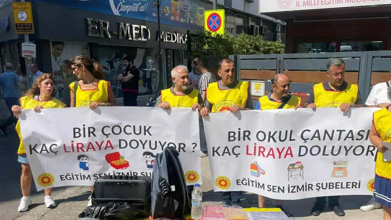 Eğitim-Sen İzmir Şubeleri, 2025-2026 eğitim-öğretim yılı öncesinde artan kırtasiye ve okul masraflarına dikkat çekti. İzmir İl Milli Eğitim Müdürlüğü önünde yapılan açıklamada, “Devlet kamusal sorumluluğunu yerine getirmeli” çağrısı yapıldı.