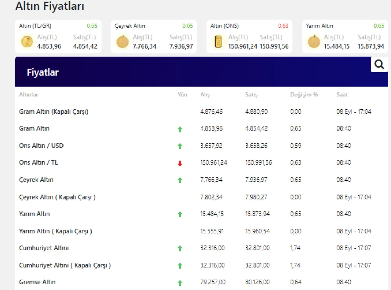 İşte güncel altın, çeyrek altın, gram altın fiyatları: