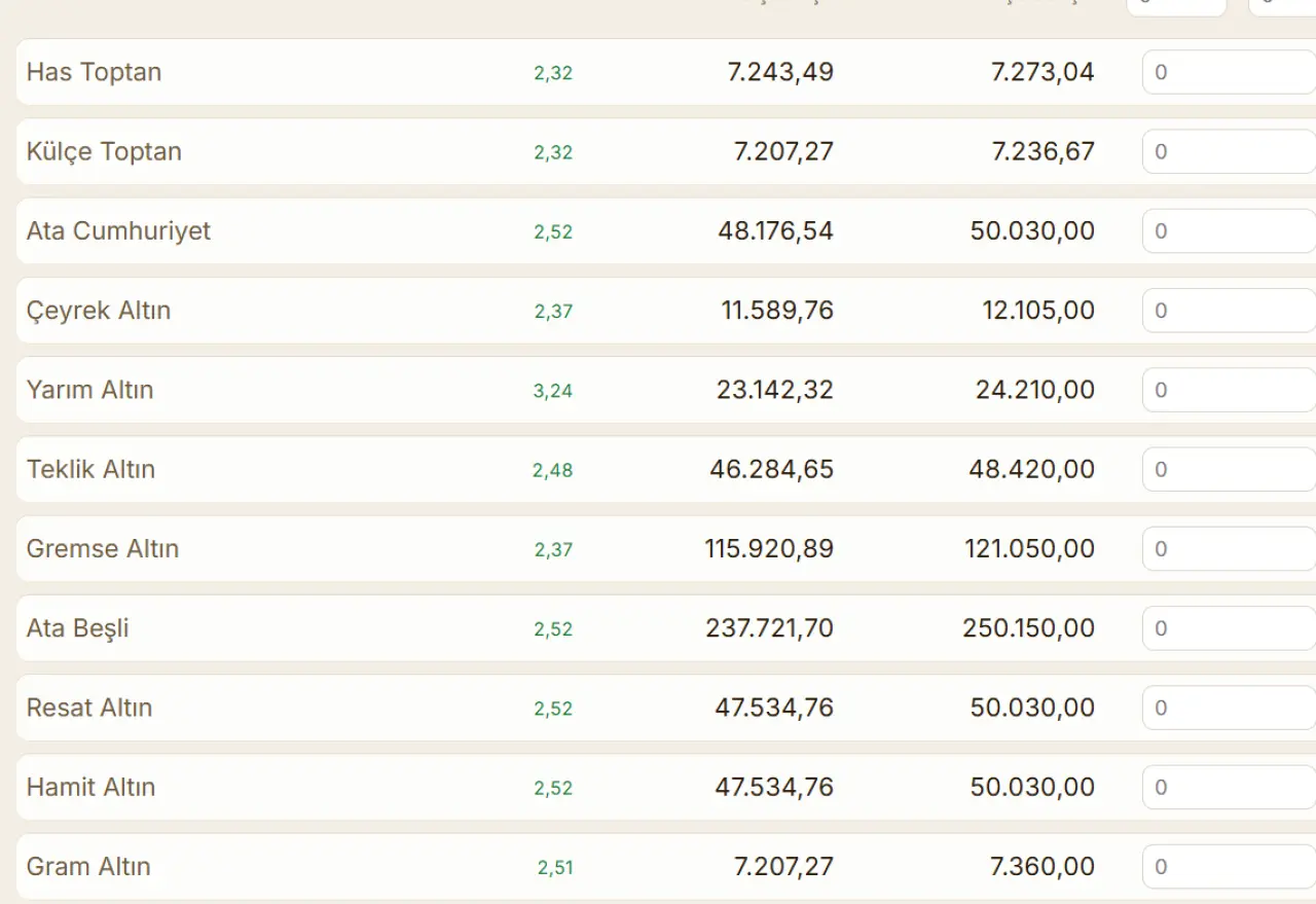Bilgi: Fiyatlar serbest piyasa ve banka kurları arasında farklılık gösterebilir. Yatırım kararı almadan önce güncel banka verilerini kontrol etmeniz önerili
