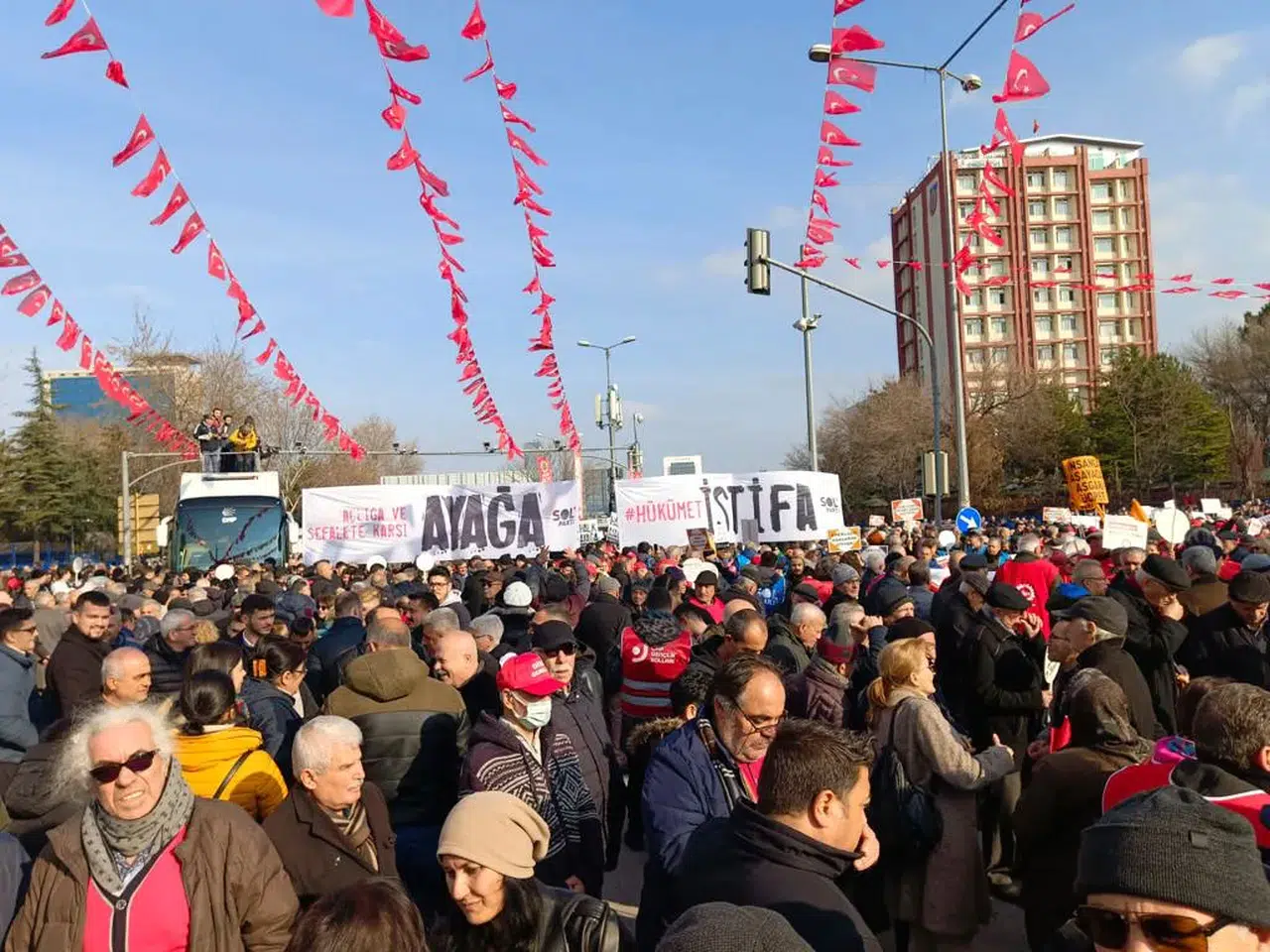 Açıkalamaların ardından CHP'li Adnan Beker, açıklamaya katılanlar ve protestoyu takip eden gazeteciler ve emniyet güçlerine "emekli simidi" dağıttı.