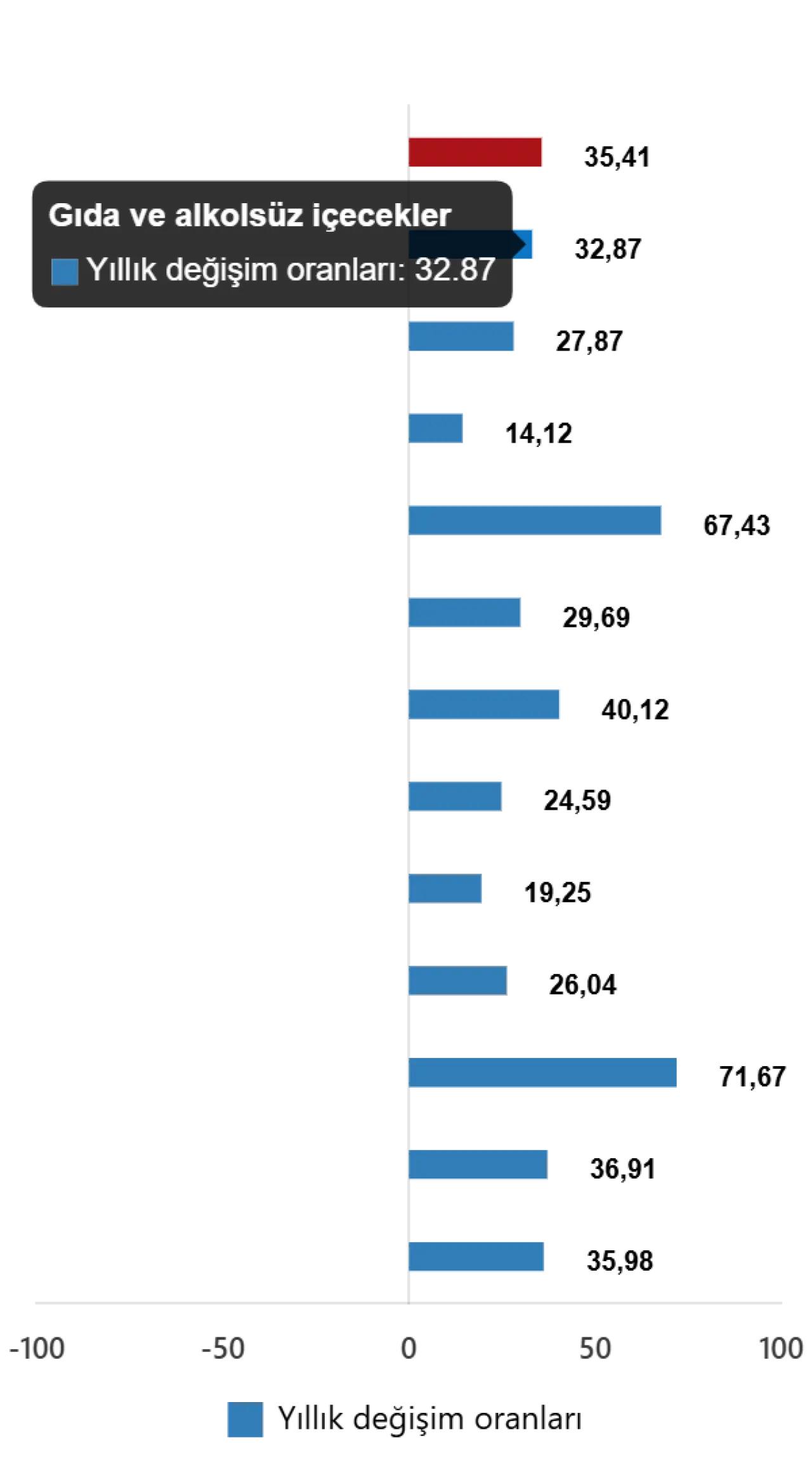 | Bir önceki yılın aynı ayına göre değişim oranı | 35,41 | 75,45 | 39,59 |