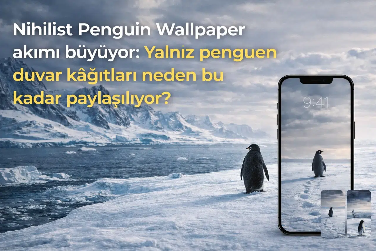 “Nihilist penguin wallpaper” trendi 2026’da viral oldu. Yalnız penguen duvar kâğıtlarının anlamı, çıkış hikâyesi ve galeri için fotoğraf önerileri.