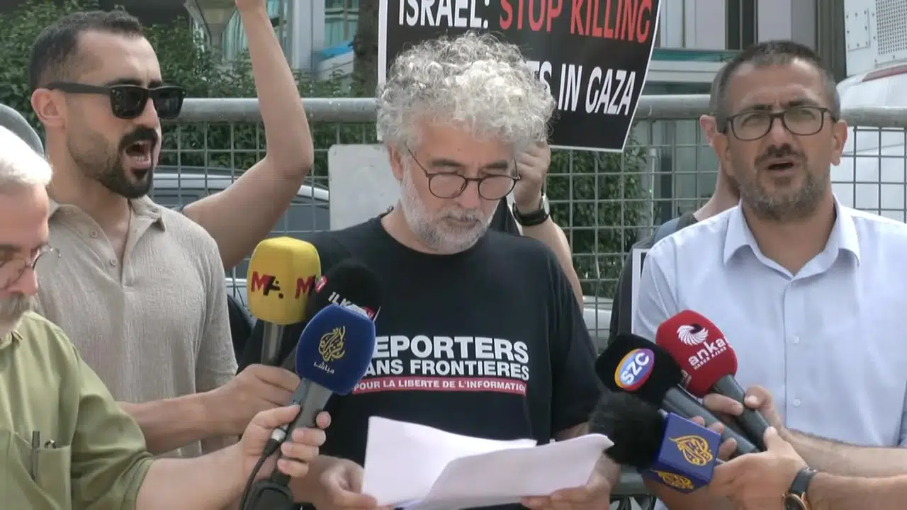 "Türkiye Gazeteciler Cemiyeti (TGC), Sınır Tanımayan Gazeteciler (Reporters sans frontieres-RSF), Türkiye Gazeteciler Sendikası (TGS), DİSK Basın İş olarak, İsrail devletinin uluslararası savaş kurallarını ve insancıl hukuk ilkelerini çiğneyerek 225 gazeteciyi öldürmesini kınıyoruz.