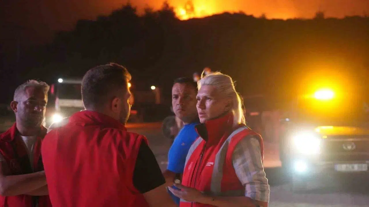 Bulunduğumuz çevredeki ağaçlar günlerdir yangının kontrol altına alınması amacıyla ekskavatörler yardımıyla kesildi ve yollar açılmaya gayret edildi. Bölgede çok fazla orman aracımız var. Yine bölgede itfaiye araçlarımız var. Birçok hava aracımız var, müdahale ediyorlar. Gerçekten bölgede ciddi bir koordinasyon var. Çevre illerden gelen su tankerleri, itfaiye araçları yine söylediğim gibi hava araçları çok yoğun bir şekilde çalışıyor. Ama bölgede nem oranının düşüklüğünden dolayı, rüzgarın çok yüksek olmasından dolayı yangına bir noktada müdahale edilebiliyor ve engellenemez durumda. Umarım yangın kısa süre içerisinde doğru müdahaleler ile birlikte kontrol altına alınacaktır.