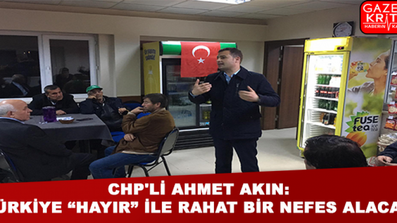 CHP Altıeylül ilçe örgütü ile birlikte Yakupköy mahallesine giden Balıkesir Milletvekili Ahmet Akın burada kahvehaneleri dolaşarak hemşerileri ile sohbet etti. Akın yaptığı açıklamada “ Biz gittiğimiz her yerde sorulan her soruya açıklıkla cevap veriyoruz. Tek adam anayasasının ülkemizi hangi felaketlere sürükleyeceğini anlatıyoruz. Kimseye hakaret etmiyoruz, saygısızlık yapmıyoruz. Kamu olanaklarını kullanmıyoruz. Ama iktidar çevreleri iktidarın tüm gücü ve olanakları ile propaganda yapıyorlar. Tarafsız olmaları yasal zorunluluk olan Valiler, Kaymakamlar, Polisler propaganda yapıyor. Hatta muhtarlarımızı ve vatandaşlarımızı tehdit ediyorlar. Adalet ve eşitlik yok. 80 milyon vatandaşımızın ödediği vergiler referandum çalışmalarında harcanıyor. Üstelik “hayır” diyenlere saygısızca ifadeler kullanılıyor. Terörle aynı safta gösterme sorumsuzluğu yapılıyor. Şimdiden halkı bölüyorlar. Kendilerinden olanlar ve olmayanlar diye ayırıyorlar. O yüzden bu anayasa değişikliği bölücüdür diyoruz. Ülkemize huzur getirmeyecek diyoruz. Bunu vatandaşlarımız da böyle görüyor. Sağduyu sahibi halkımız bu kötü gidişe dur diyecek. Bunalmış Türkiye verilecek “hayır” oyları ile rahat bir nefes alacak” dedi.