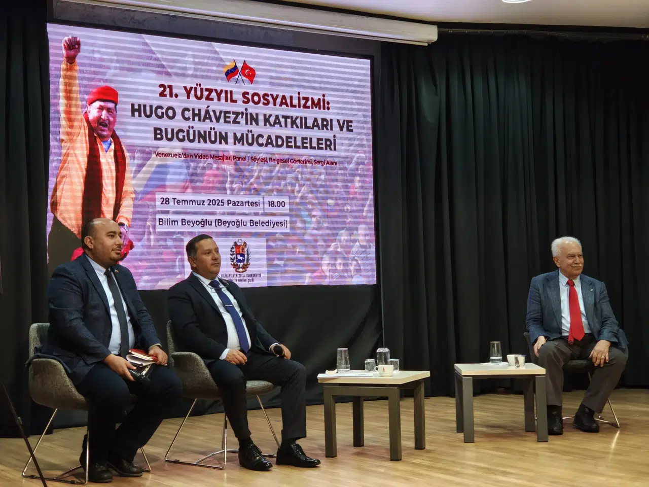 Vatan Partisi Genel Başkanı Doğu Perinçek, İstanbul’da düzenlenen "21. Yüzyıl Sosyalizmi: Hugo Chavez'in Katkıları ve Bugün Mücadeleleri" başlıklı etkinlikte konuştu. Venezuela Cumhuriyeti Ankara Büyükelçisi Freddy Eduardo Molina ile birlikte konuk olan Perinçek, iki ülkenin devrimci birikimlerine ve tüm dünyaya örnek olmaları üzerinde durdu.