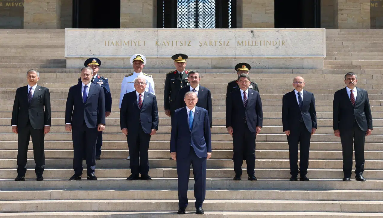 Cumhurbaşkanı Erdoğan'ın Aslanlı Yol'un başındaki yerini almasının ardından başlayan törene, Cumhurbaşkanı Yardımcısı Cevdet Yılmaz, Adalet Bakanı Yılmaz Tunç, İçişleri Bakanı Ali Yerlikaya, Hazine ve Maliye Bakanı Mehmet Şimşek, Milli Eğitim Bakanı Yusuf Tekin, Milli Savunma Bakanı Yaşar Güler, Dışişleri Bakanı Hakan Fidan, Türk Silahlı Kuvvetleri komuta kademesi katıldı.
