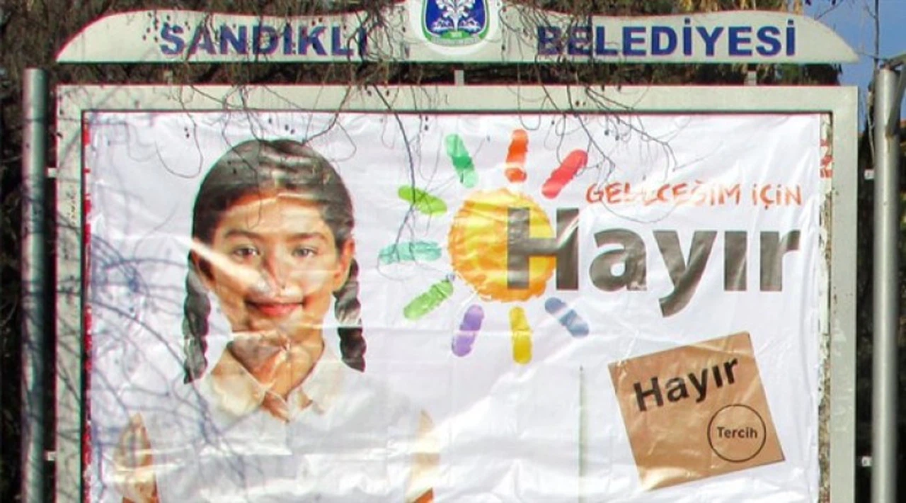 Afyonkarahisar'ın Sandıklı İlçesi'nde referandumla ilgili billboarda asılan 'hayır' afişi kimliği belirsiz kişi ya da kişilerce indirildi. CHP ilçe yönetimi olayla ilgili polise başvurdu.