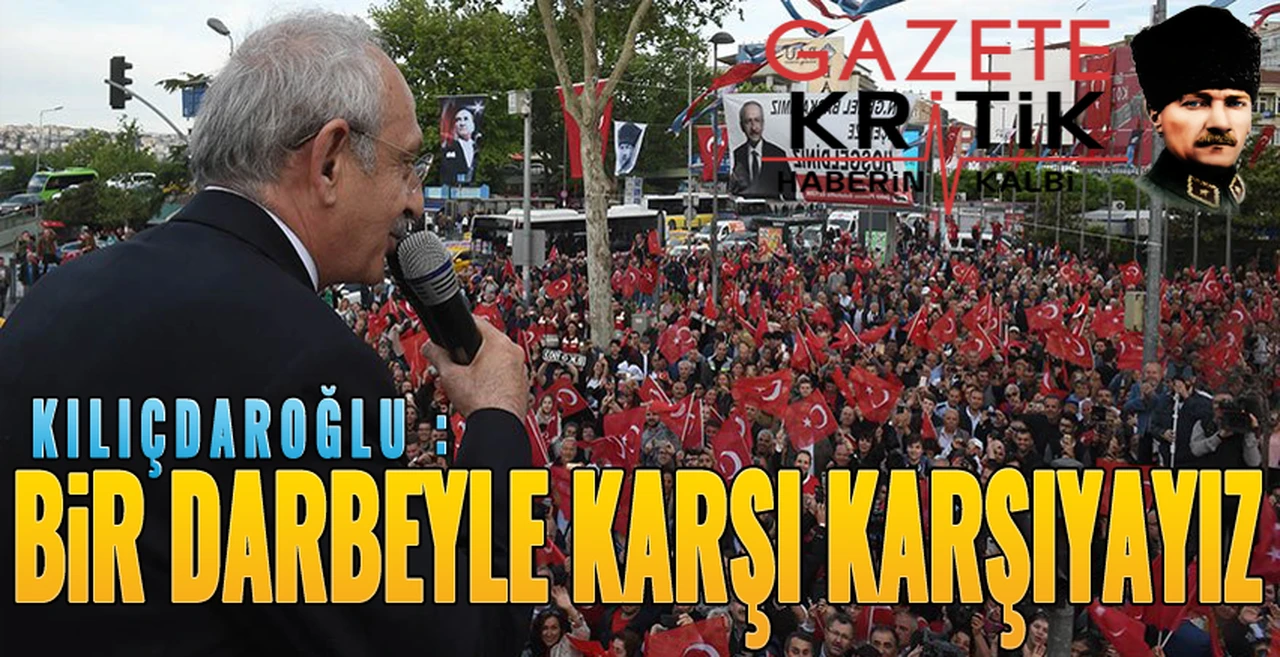 Sözü Sözcü Gazetesi’ne yönelik operasyona getiren Kılıçdaroğlu, ‘Sözcü Gazetesi’nden ne istiyorsunuz Dik duruyor onun için. Boyun eğmediler onun için. Aynı şey Cumhuriyet Gazetesi için de geçerli. Yazarları 200 günü aşkındır hapiste. Üç maymunları oynayan bir iktidar var. Böyle bir tablo askeri darbe dönemlerinde bile yaşanmadı. Bir darbeyle karşı karşıyayız, asla ve asla bunların önünde diz çökmeyeceğiz ve boyun eğmeyeceğiz’ şeklinde konuştu.