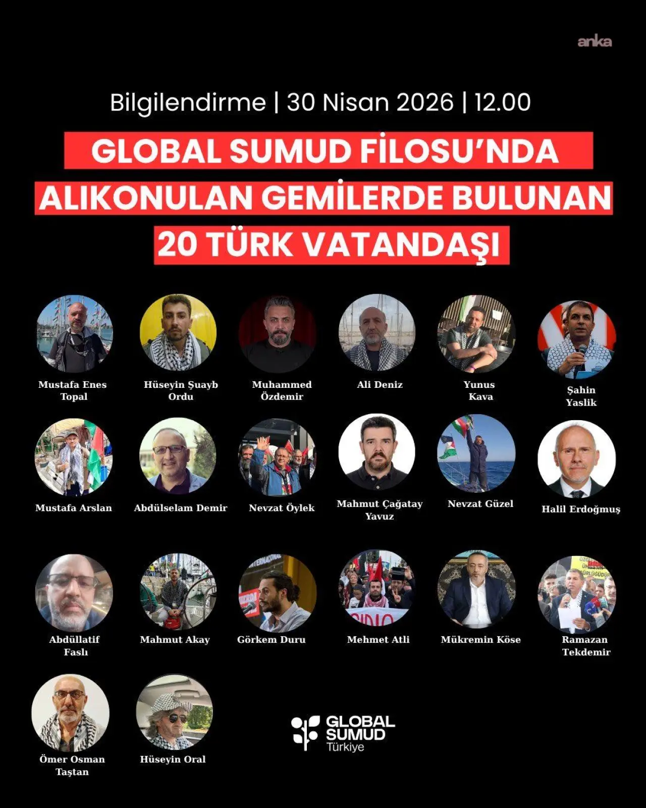 Global Sumud Filosu Türkiye’nin sosyal medya hesabından yapılan bilgilendirmede, müdahalenin ardından alıkonulan gemilerde bulunan Türk vatandaşlarının isimleri kamuoyuyla paylaşıldı.