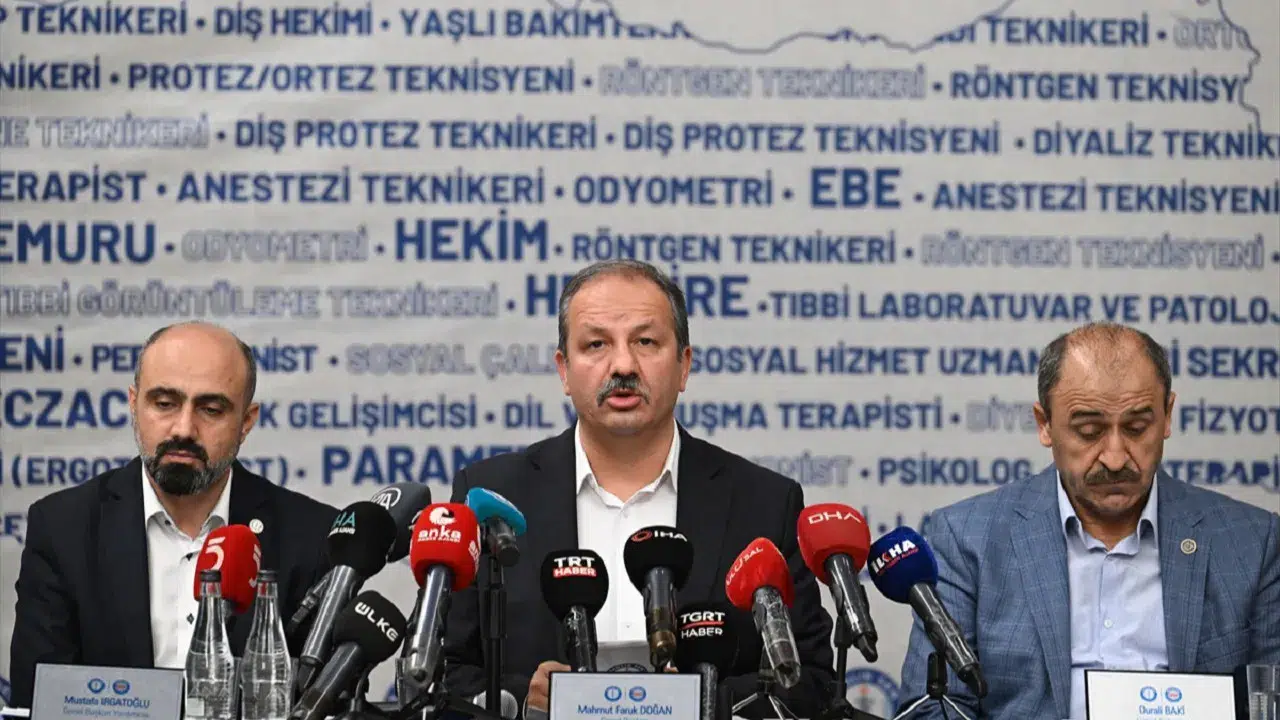Sağlık-Sen Genel Başkanı Mahmut Faruk Doğan, 8. Dönem Toplu Sözleşmesi'ne ilişkin taleplerini açıkladı. Hekim, hemşire, ebe, sağlık memuru, paramediğin alım gücü düştüğünü, vergi yükünün esas olarak ücretli kesimin üzerine bindiğini belirten Doğan, "Bu durumu Maliye Bakanlığı’nın açıkladığı verilerde de açıkça gördük. En fazla vergiyi hekimler, hemşireler, bordrolu çalışanlar vermektedir" dedi.