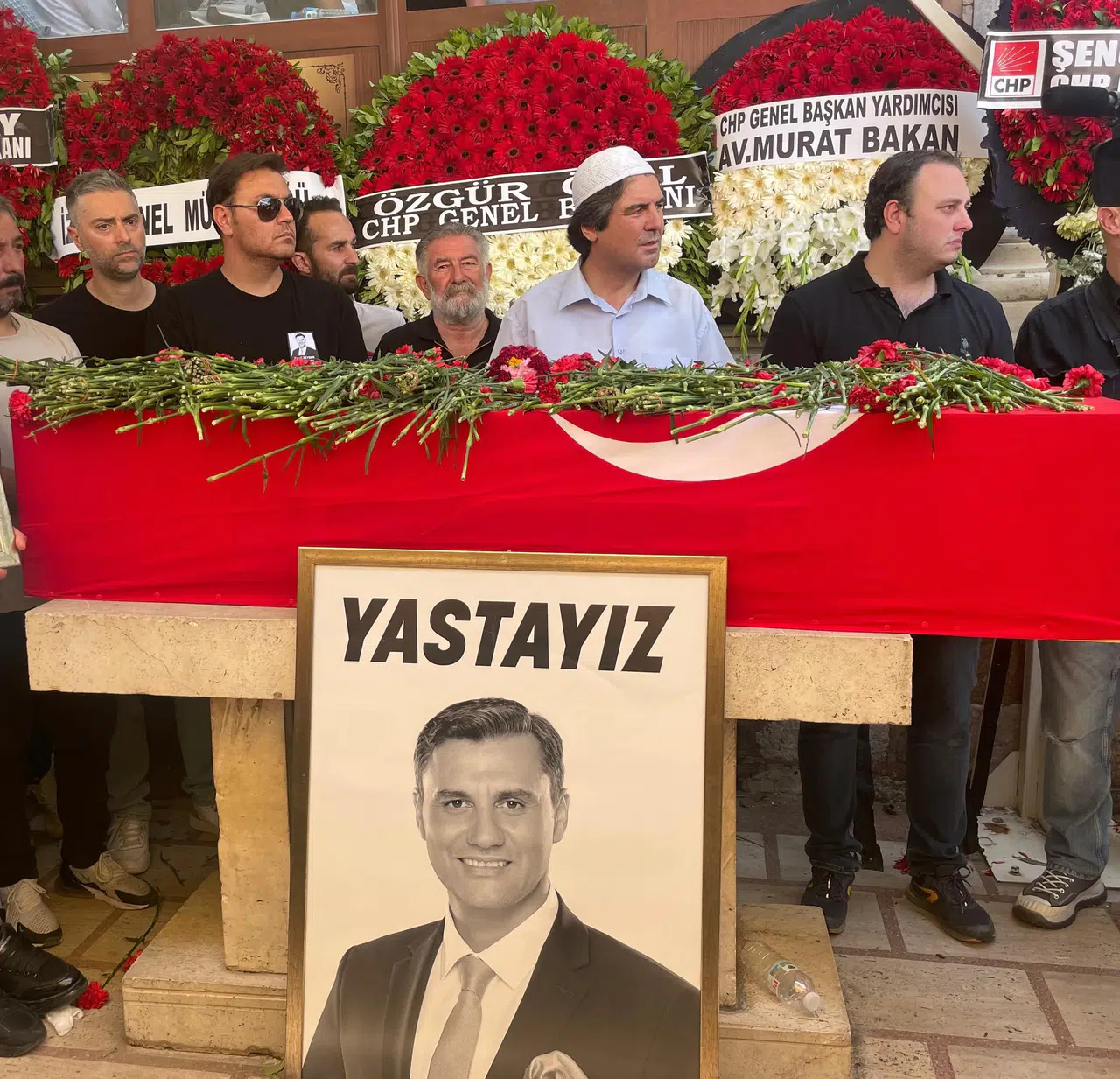 Cenazeye katılmak için Adalet Bakanlığı'ndan izin talebi kabul görmeyen CHP'nin tutuklu Cumhurbaşkanı adayı ve İstanbul Büyükşehir Belediye Başkanı Ekrem İmamoğlu'nun da çelenk gönderdiği görüldü.
