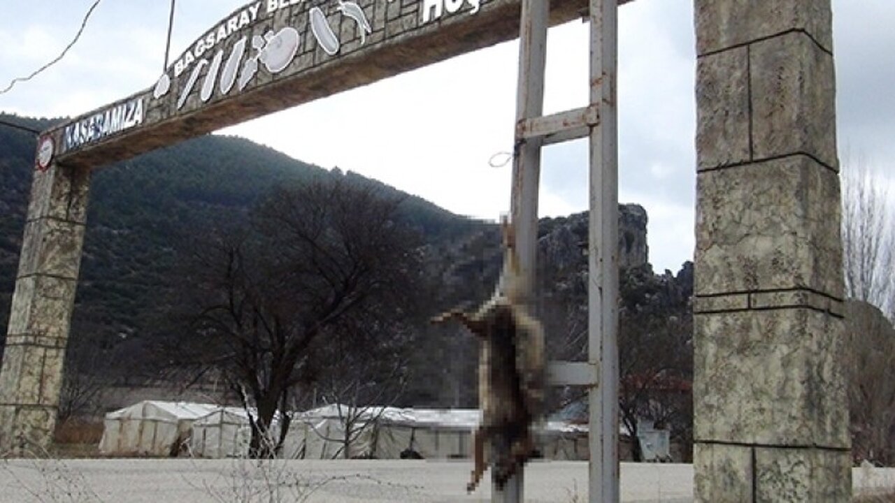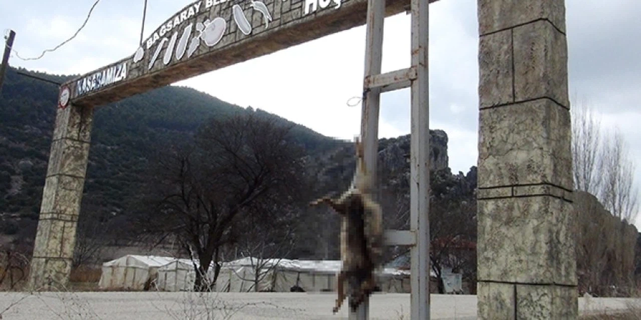 Burdur Mehmet Akif Ersoy Üniversitesi (MAKÜ) Veteriner Fakültesi öğretim üyesi Prof. Dr. Yakup Yıldırım, dün bir görev için gittiği Çeltikçi ilçesine bağlı Bağsaray Beldesi girişindeki elektrik direğine bacağından asılı tilki leşi gördü.
