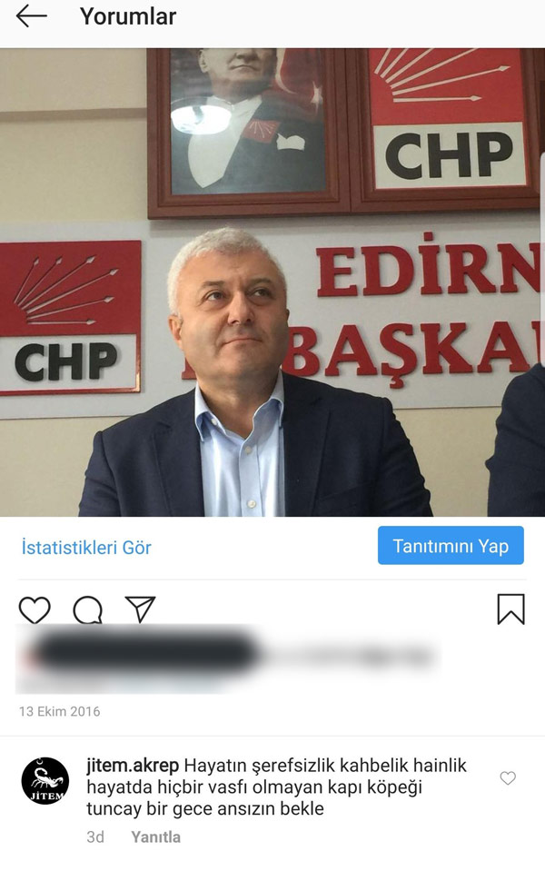 Diğer bir paylaşımında da "Bu bir polis mi yoksa kolpacı sokak serserilerinden biri mi? Alçaksın. Bunun sahibi belli olsun sonra diyeceklerim var." ifadelerini kullandı.