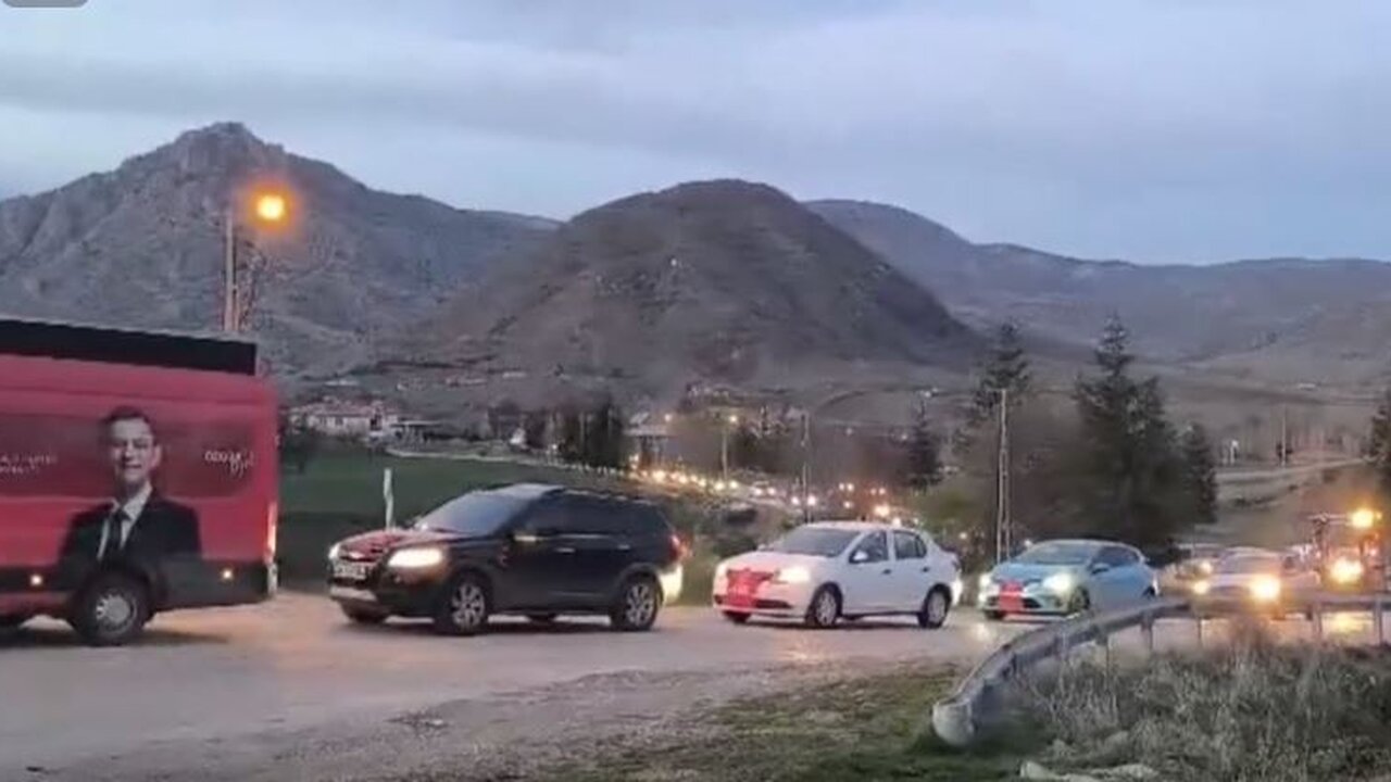 Yozgat’ta İstanbul Büyükşehir Belediye Başkanı ve CHP'nin Cumhurbaşkanı adayı Ekrem İmamoğlu’nun tutuklanmasını protesto etmek için yapılan eylemlere destek vermek üzere motorlu araçlarla konvoy düzenlendi. Yüzlerce aracın katıldığı konvoya, çiftçiler traktörleriyle katıldı.