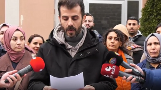 "Mülakat değerlendirmelerinde yaşanan mağduriyet" nedeniyle adalet ve hak arayışını sürdüren öğretmen adayları İstanbul İl Milli Eğitim Müdürlüğü önünde basın açıklaması yaptı. Mağdur öğretmen adaylarının sözcülüğünü yapan felsefe öğretmeni adayı Özkan Özdemir, şunları söyledi: