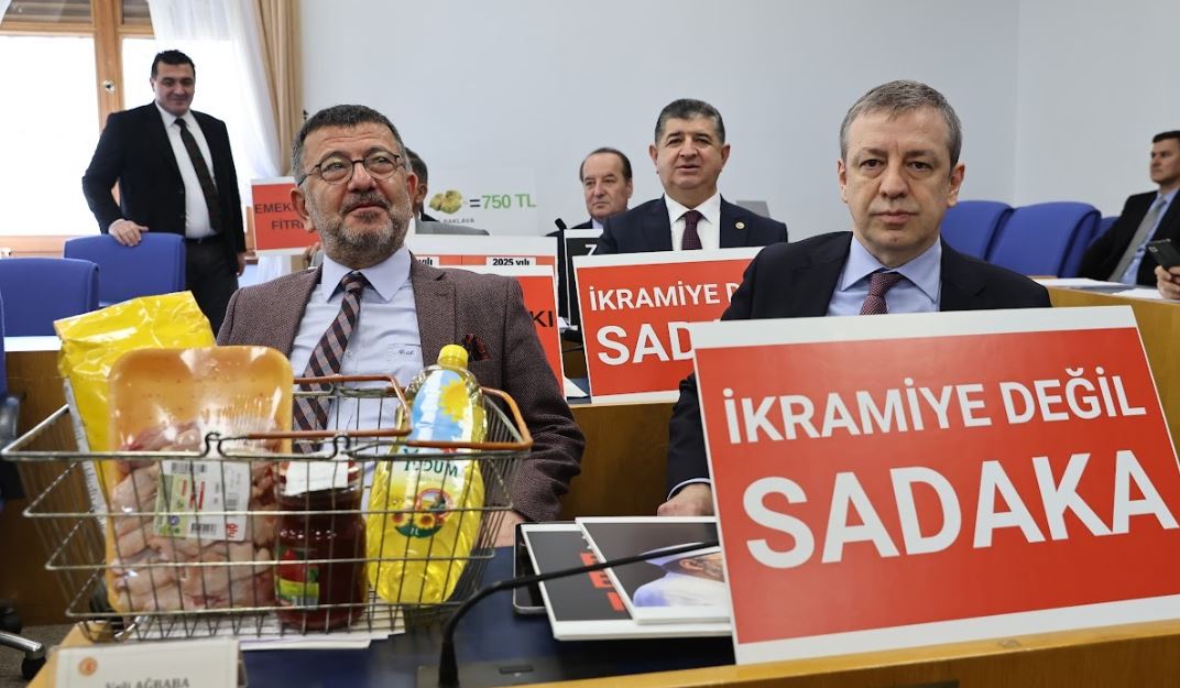 TBMM Plan ve Bütçe Komisyonunda emekli bayram ikramiyesinin 3 bin liradan 4 bin liraya yükseltilmesini de içeren Gençlik ve Spor Hizmetleri Kanunu ile Bazı Kanun ve Kanun Hükmünde Kararnamelerde Değişiklik yapılmasına ilişkin kanun teklifinin görüşmeleri protestoyla başladı. CHP’li milletvekilleri masalarına koydukları dövizlerle ikramiye artışının az olmasını protesto etti. CHP Malatya Milletvekili Veli Ağbaba, bin liralık artışla sadece iki litre yağ, bir paket tavuk, salça ve bir paket alınabildiğini belirterek, "Bunların enflasyondan haberi yok. Bu sepeti teklif sahiplerine getirdim. Pazara gitmedikleri için haberleri yoktur. Memleketin geldiği hale bakın" dedi.