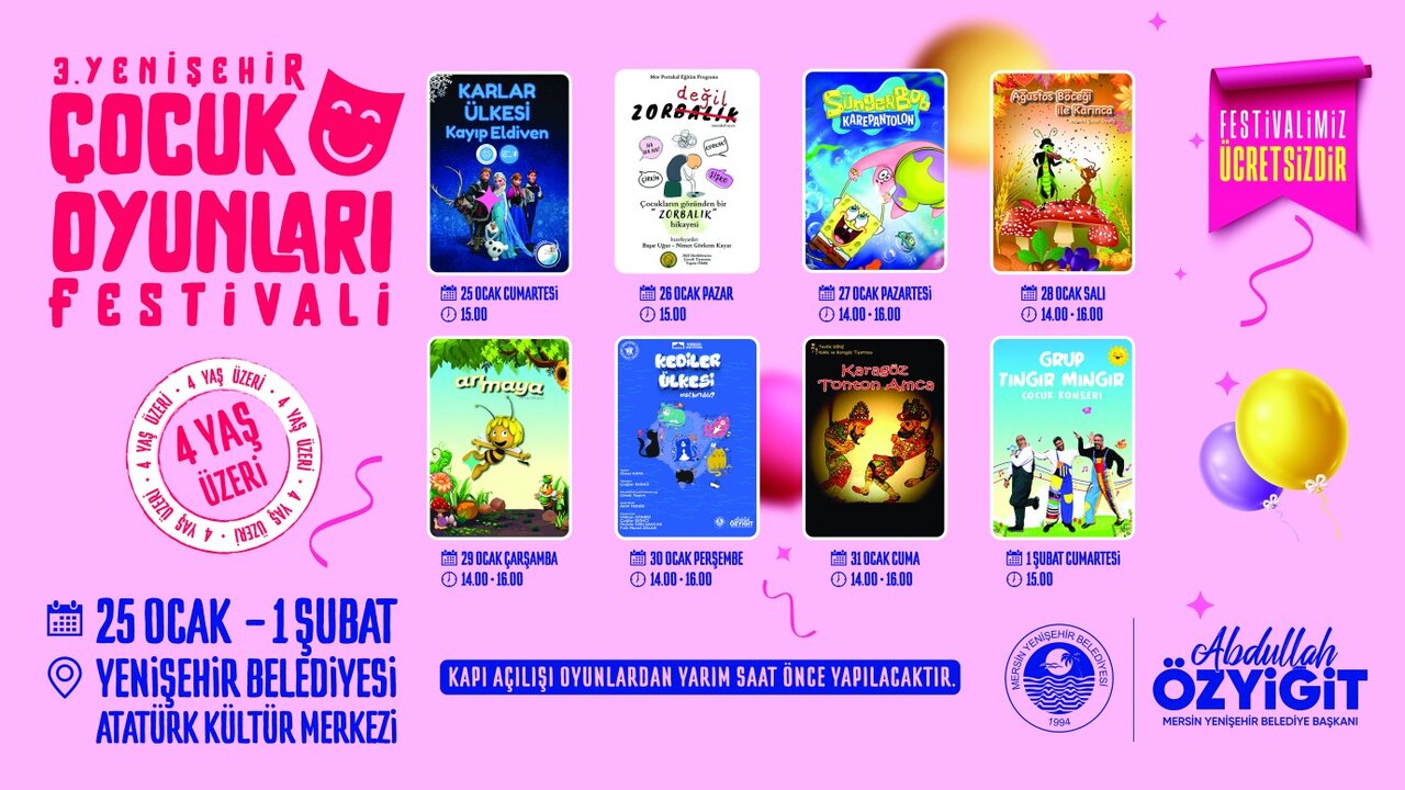 3. Mersin Yenişehir Çocuk Oyunları Festivali 25 Ocak’ta başlıyor