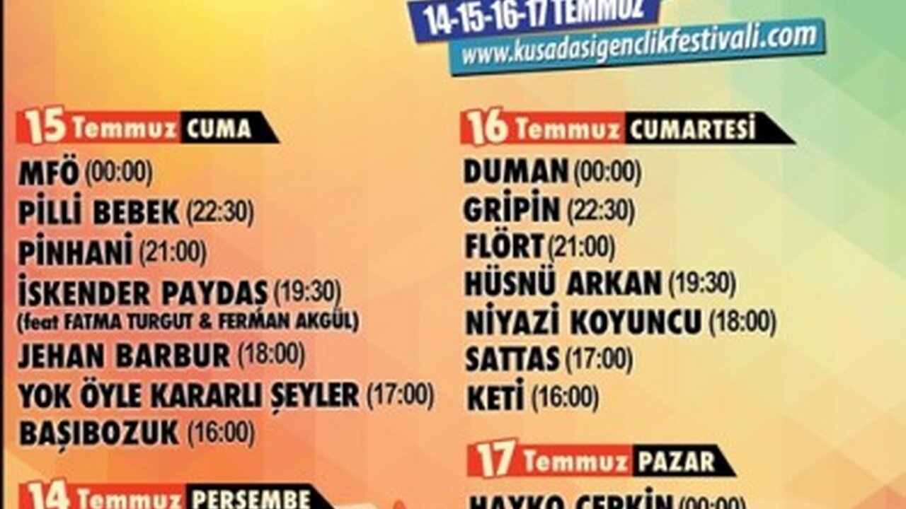 Aydın, Söke, Manisa, İzmir ve Muğla'dan turların düzenleneceği kamplı Kuşadası Gençlik Festivali’nin programı şöyle: