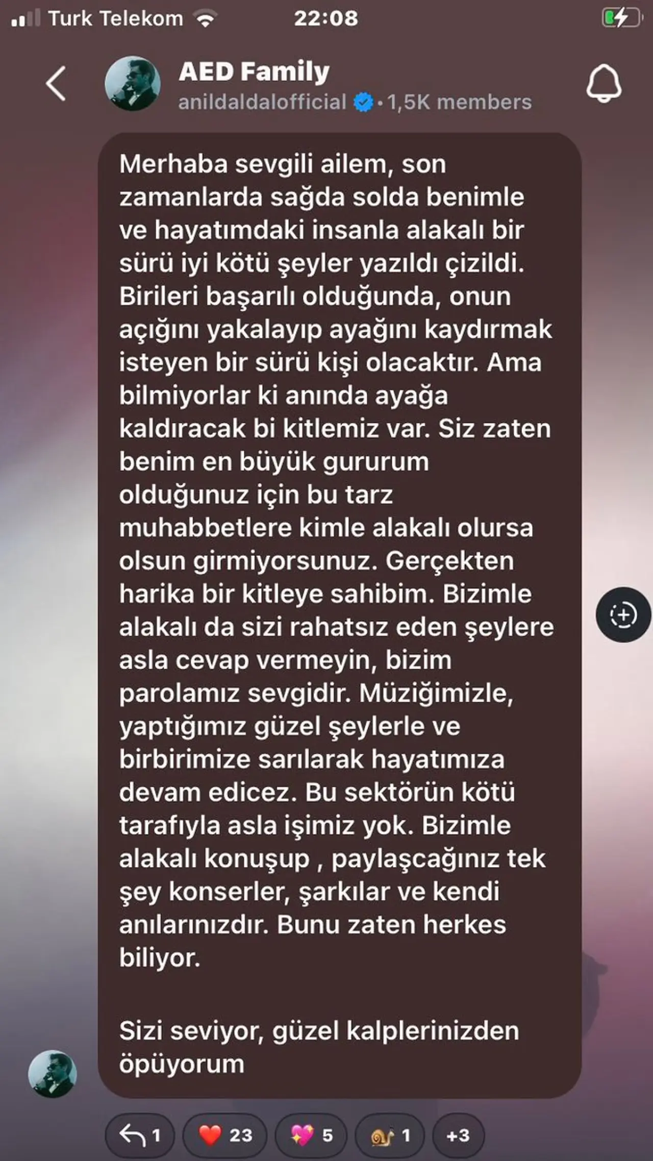 Anıl, hayranlarına da seslenerek şu cümleleri kurdu: