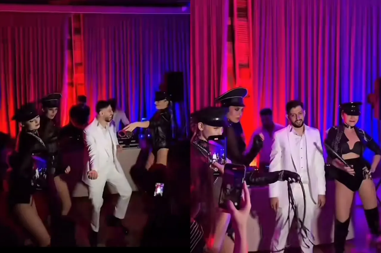 Düğün sonrası başlayan after party, sahne şovları ve konseptiyle gündeme oturdu. Polis temalı dansçılar, kelepçeler, kırbaçlar ve ışık oyunları eşliğinde eğlenen çift, sosyal medyada hem beğeni hem de eleştiri aldı. Müzik dünyasından Kurtuluş Kuş ve İrem Derici, eğlencenin başrollerini üstlendi.