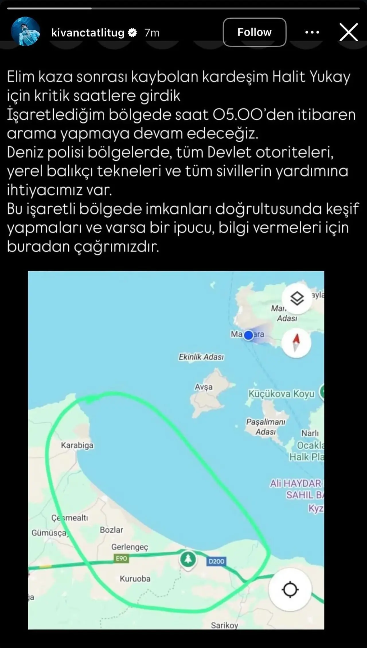 Kıvanç Tatlıtuğ, sabah saatlerinde arama çalışmalarına devam edeceklerini belirterek, imkanlar doğrultusunda destek çağrısında bulundu. Ünlü oyuncunun bu duyarlılığı ve desteği, takipçileri tarafından takdirle karşılandı.