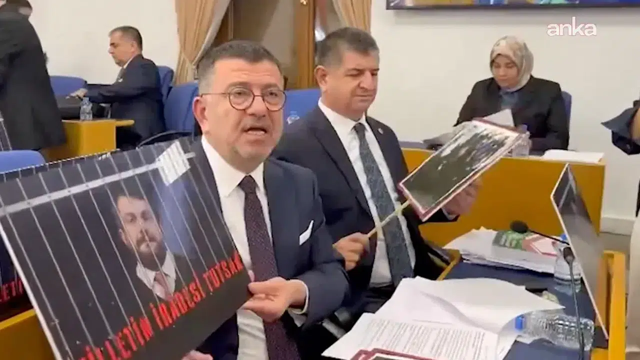 Toplantı başlamadan önce CHP grubu hükümlü eski milletvekili Can Atalay'ın fotoğraflarının olduğu dövizleri masalarına koydu. CHP Grup Sözcüsü Veli Ağbaba, Atalay hakkındaki AYM kararlarını hatırlatarak, TBMM Başkanı Numan Kurtulmuş'a şöyle tepki gösterdi: