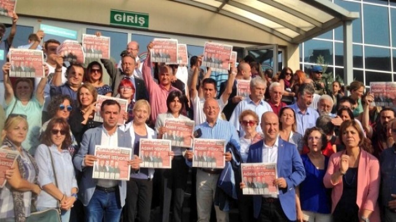 "Terör örgütüne üye olmamakla birlikte örgüt adına ve anayasal düzene karşı suç işlemek" iddiasıyla beşi tutuklu yargılanan Cumhuriyet yönetici, yazar, muhabir ve avukatları hakkındaki davanın ikinci duruşmasından tahliye çıkmadı.