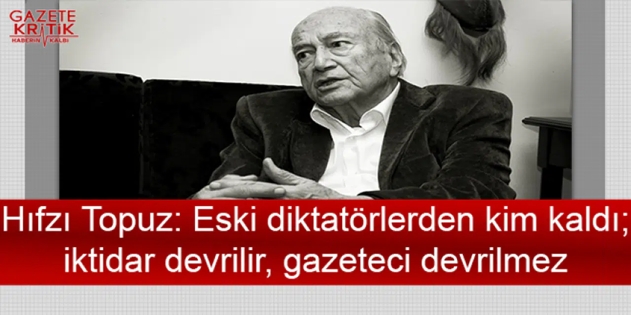 94 yaşındaki gazeteci ve yazar Hıfzı Topuz, "Dikta rejimlerinin yıkılacağına yüzde yüz inanıyorum. Eski diktatörlerden kim kaldı? Neler gördük. Hepsi gitti. Zaman bunları eritiyor. İktidar devriliyor, gazeteciler devrilmiyor. Kenan Evren dahil hepsinin devrildiğini gördük" yorumunda bulundu.